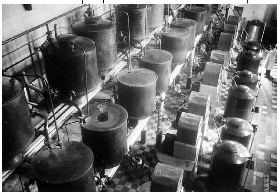 "Подогревание. Этот вполне невинный и простой способ состоит в том, что молодой продукт, предварительно разбавленный водою до 50°, нагревают, лучше на водяной бане, 1-2 часа в закрытом сосуде до 70-75°Ц, дают затем медленно охладиться в том же сосуде и потом сливают в прежнее помещение. Операцию нагревания для очень молодого продукта повторяют 2-3 раза в год. Подогревание дает особенно хорошие результаты для коньяков, уже выдержанных 2-3 года, но в которых еще заметно присутствие 'сырца'. Уже после первого подогревания коньяк становится ощутительно мягче на вкус.
