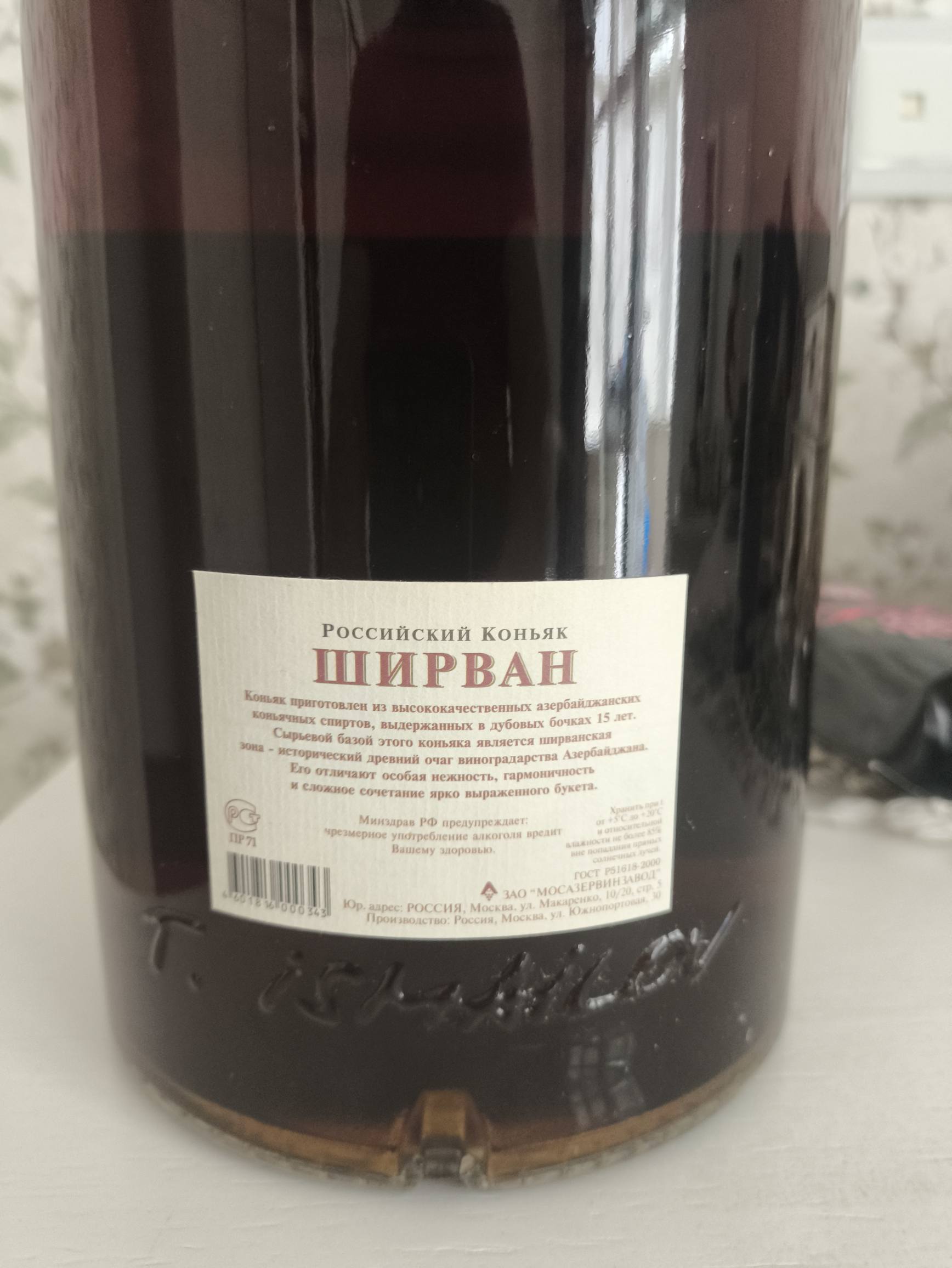 Теперь вопросы... Судя по тому, что производитель указан, как ЗАО "МосАзериВинзавод", розлив был осуществлен между 1999-2015, более вероятно до 2010-го. При том, что каждая бутылка при выдувке подписана личной подписью "Т.Исмайлов" (видно на фото). Учитывая, что тогда он находился на пике "славы", не думаю чтобы в свои "именные" бутылки он заливал абы что... Но в то же время, поставщиками из Азербайджана спиртов такой выдержки были только несколько производителей, ГейЧайский КЗ (выкупленный GanjaSarab II), Тоузский КЗ и Шамхорский Винкомбинат (на последнем оставались спирты еще советских времен, слитые с бочек). Но проблема в том что, Гянджинский винзавод вообще "налево" спирты не продавал; Тавузский только налаживал производство, и на свои спирты ставил "конский ценник"... а вот спирты Шамхорского Винкомбината вполне могли быть проданы, а это были одни из самых лучших коньяков АзССР