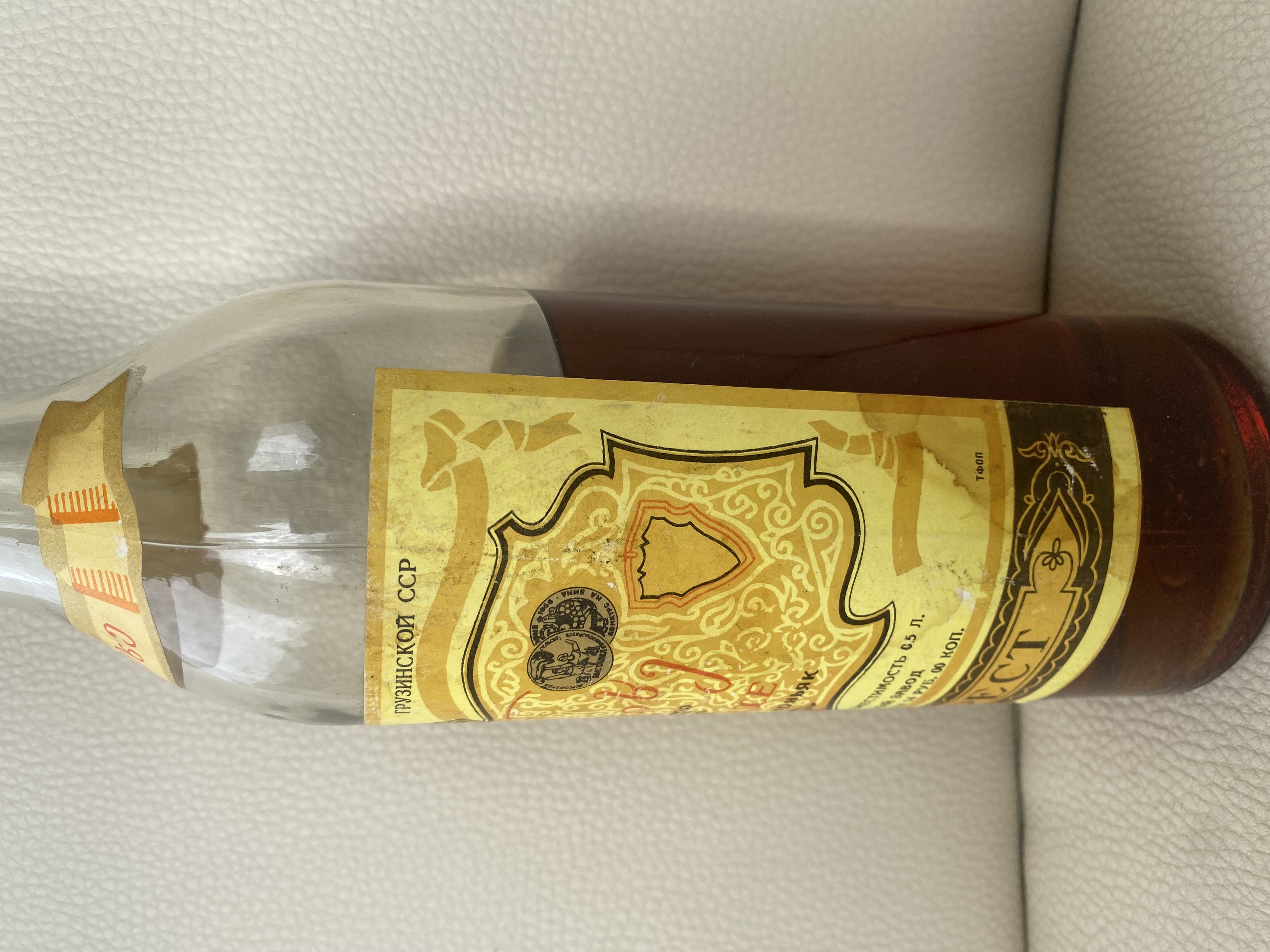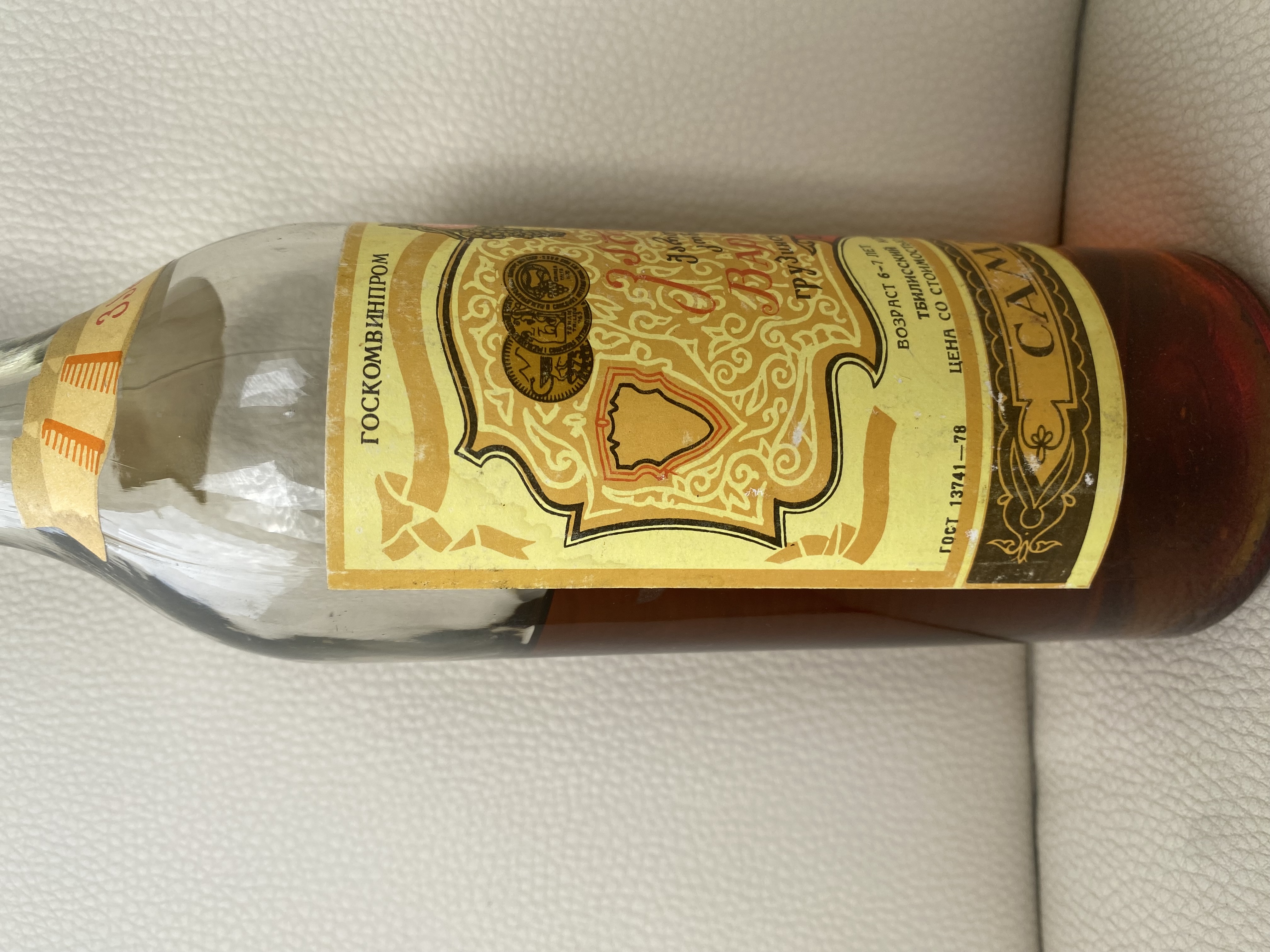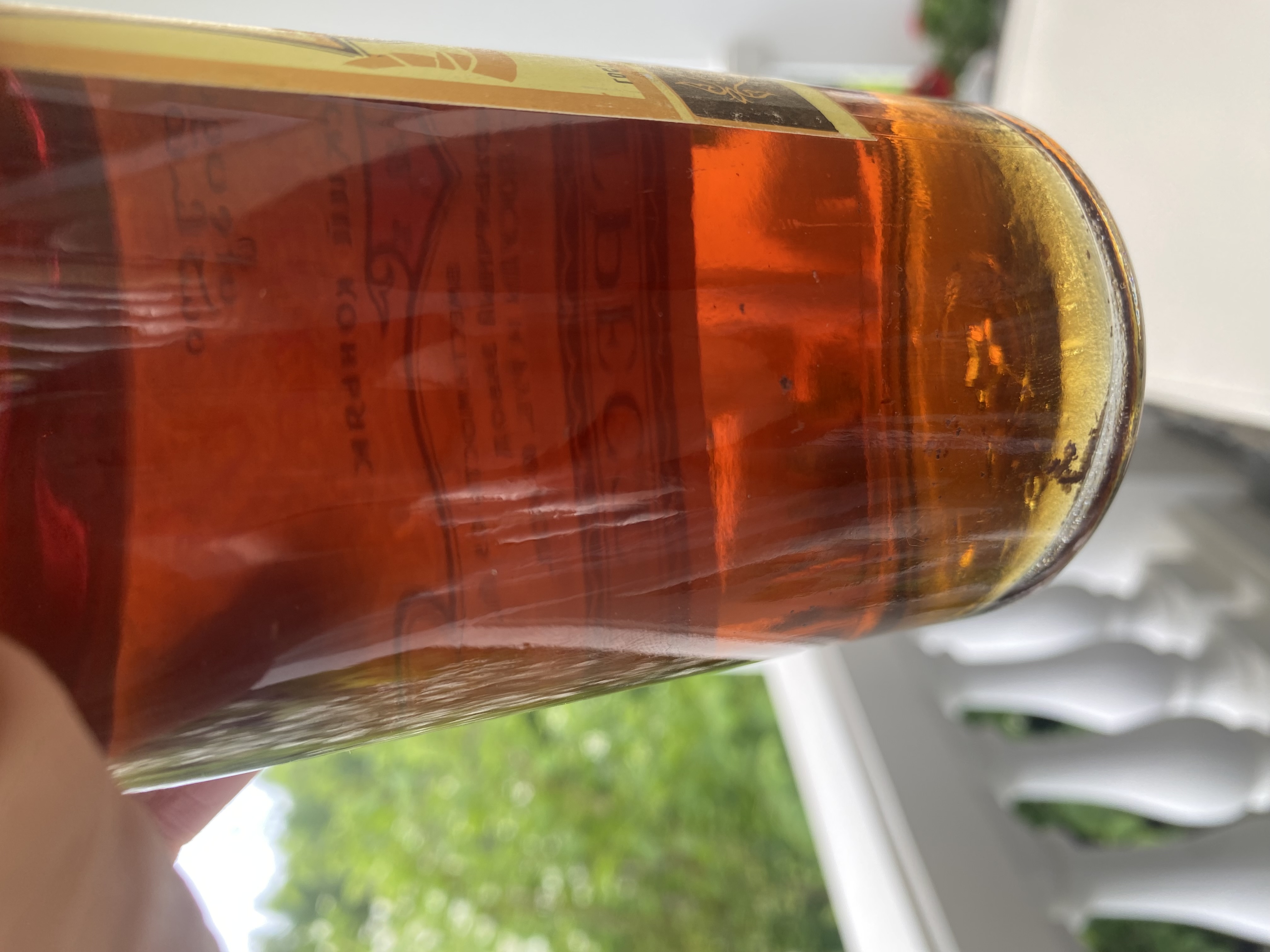 Приветствую! Прошу высказать свое мнение относительно данного экземпляра. Бутылка попала ко мне с сильно севшим уровнем. Пробка подтекала. Открыл. Аромат сомнений не вызывает. Не хватает крепости, возможно, из-за падения уровня. Есть небольшой осадок. На донышке читается 85й год. Какое Ваше мнение, что это за коньяк? Спасибо!