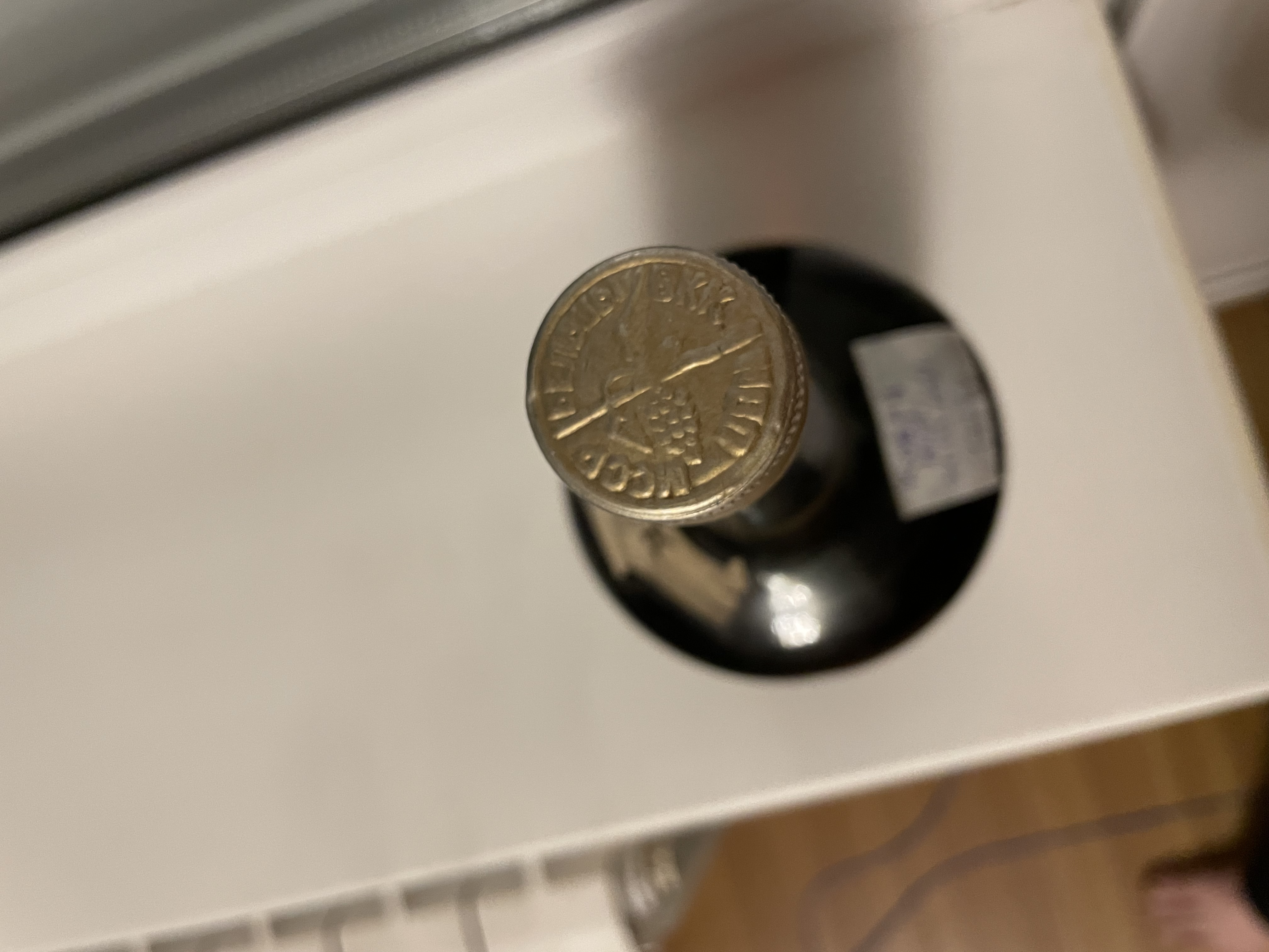 Есть такое ощущение, что и передняя этикетка и пробка выгорели. Задняя этикетка и пробка сзади имеют родной золотистый цвет. Вот такие наблюдения.