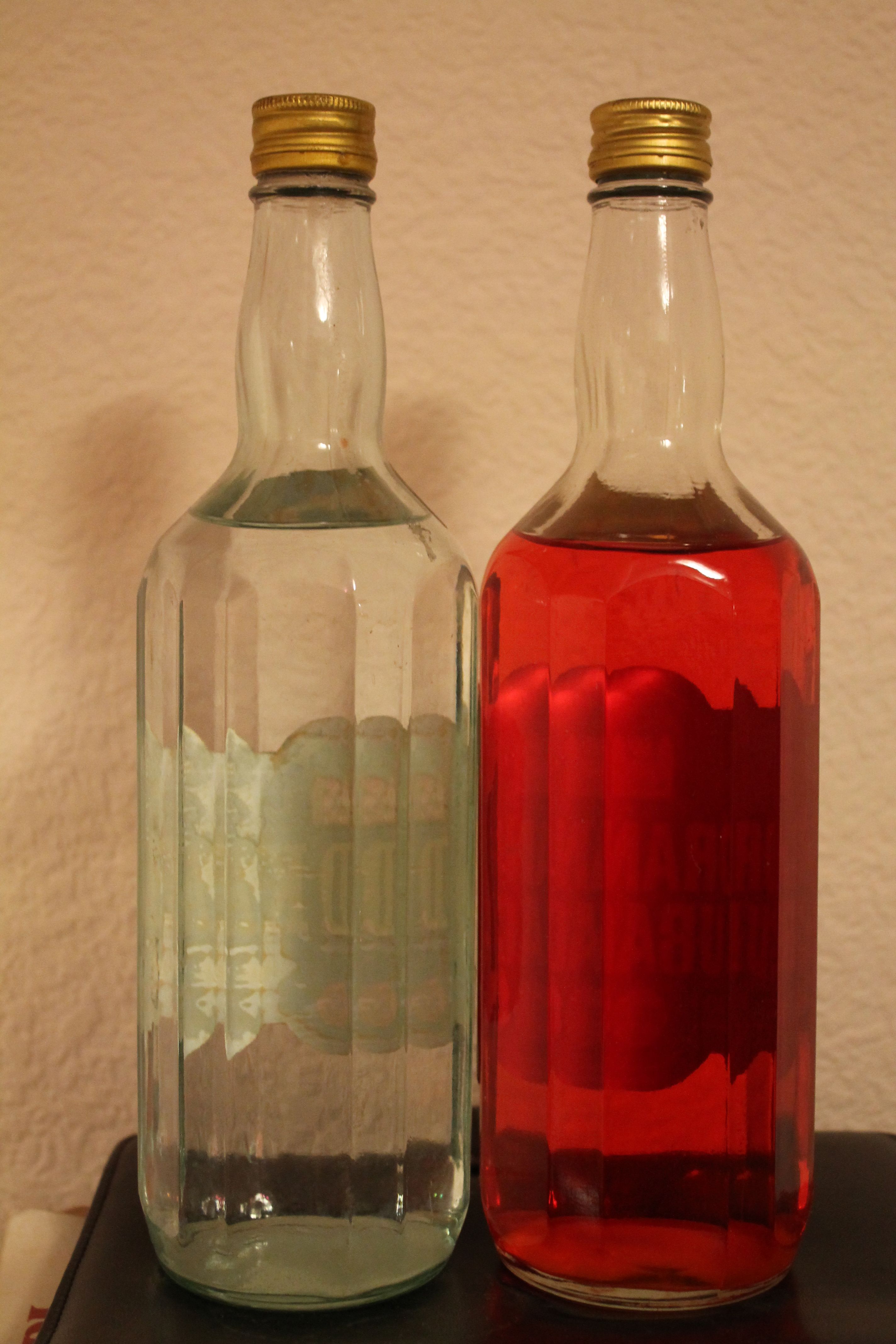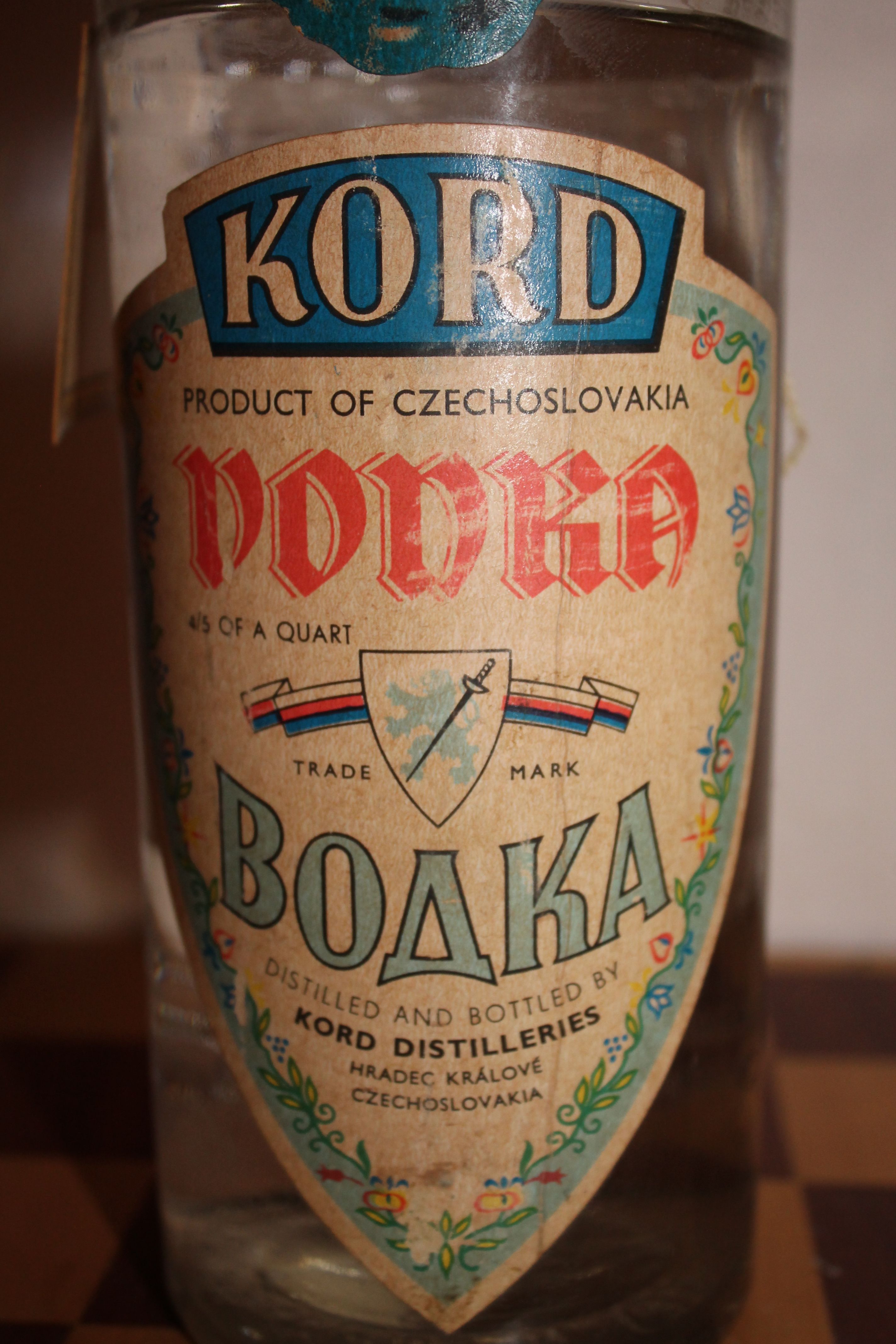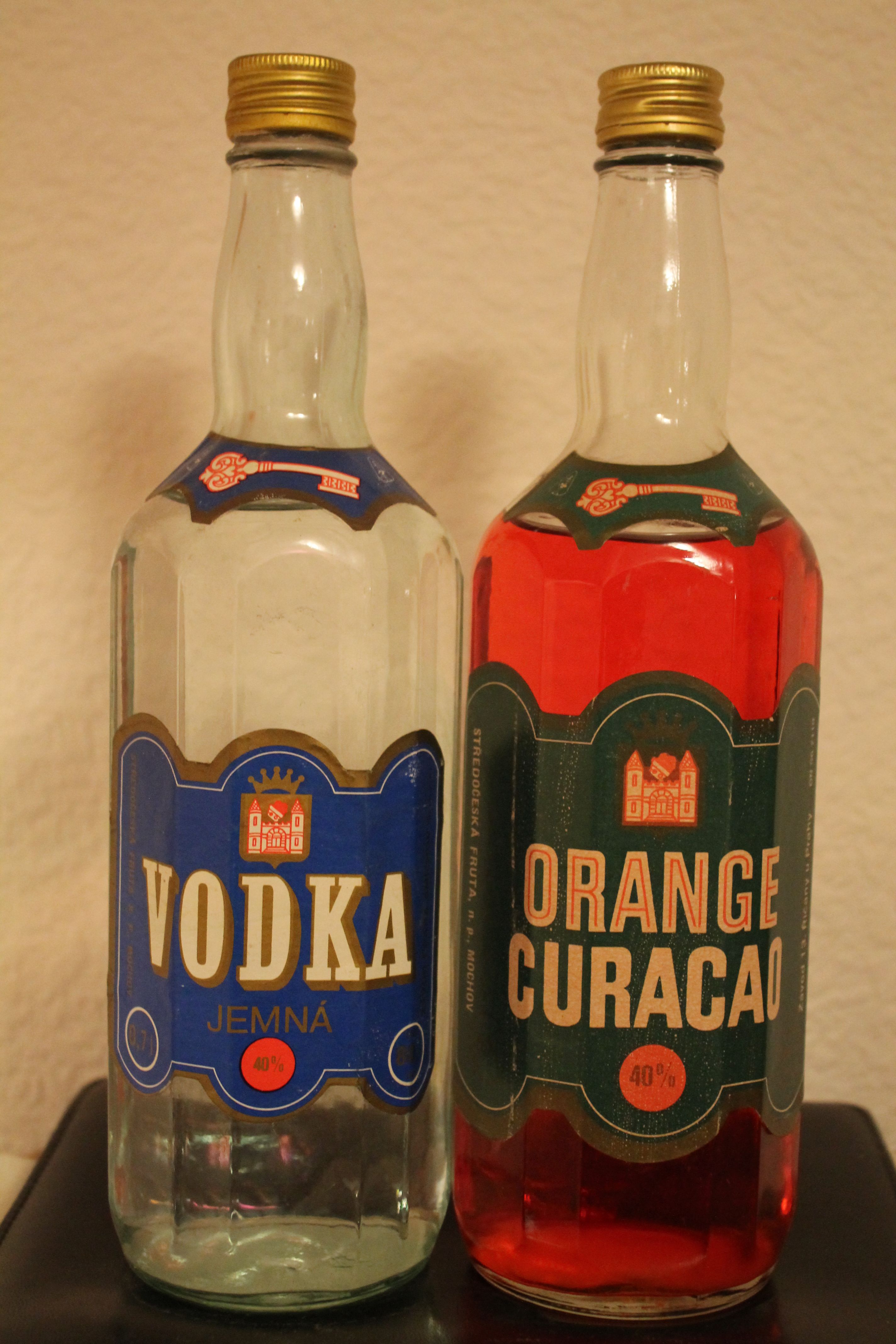 Красивые граненые бутылки с одинаковым логотипом производителя (на самом деле, водка производства завода "Смихов" (Прага-5), а ликер - 13-го завода в Ричанах под Прагой). Стоимость водки 80 кэцэ, ликер стоил 105.