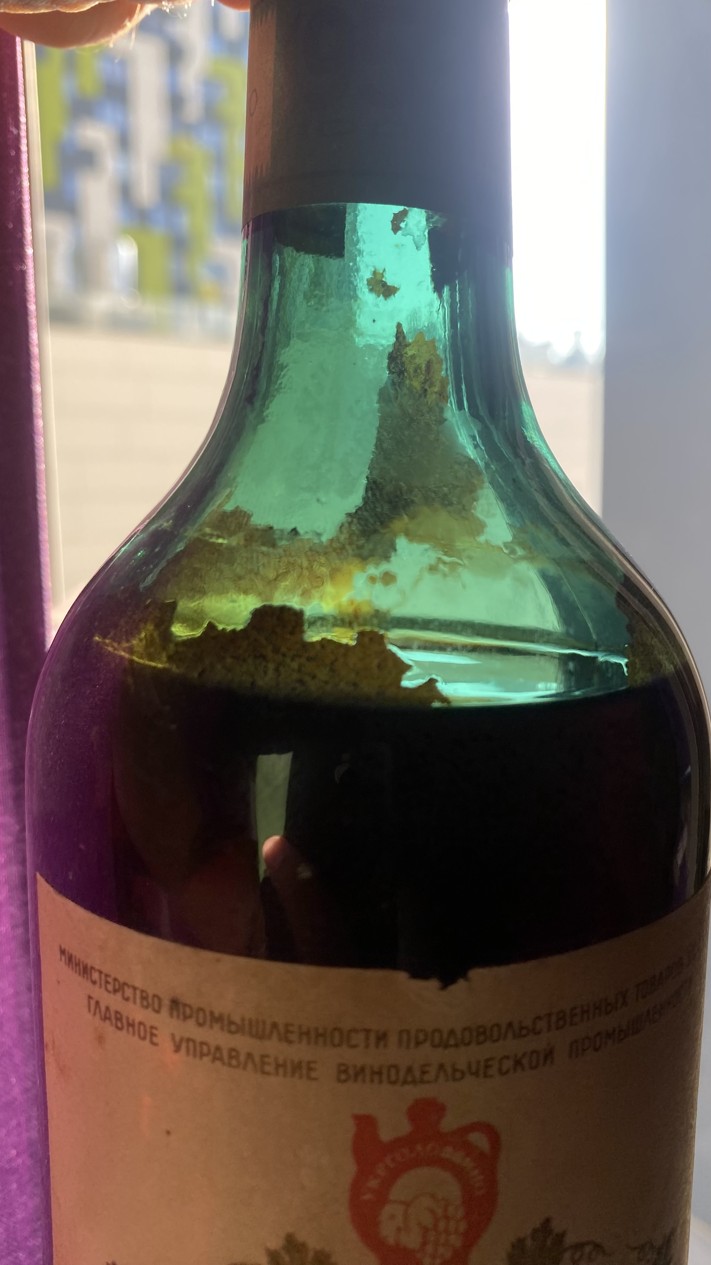 Имеется осадок,но вино прозрачное,1947 год пока ехал немного протек,запах потрясающий!