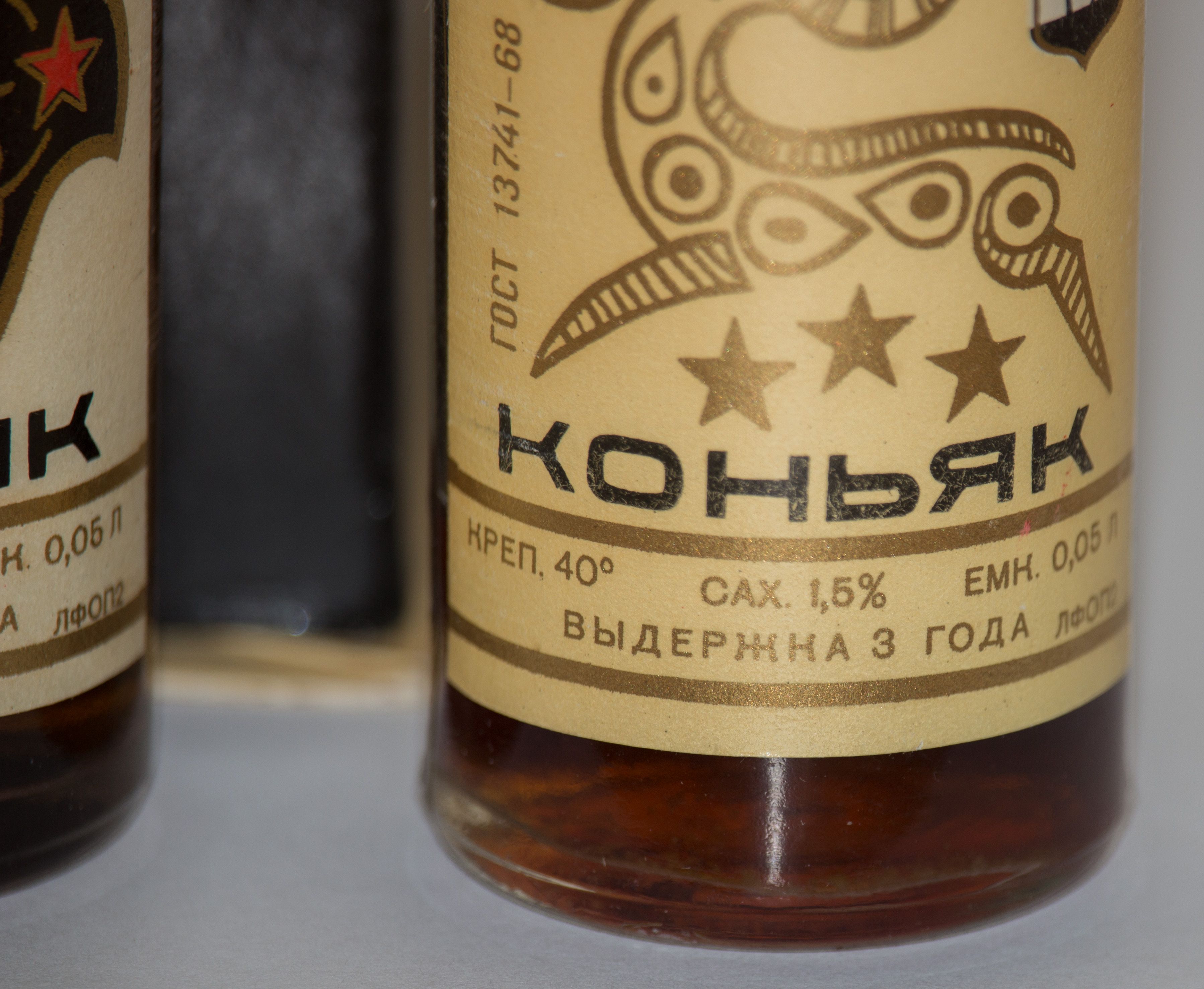 От родственника жены достались вот такие бутылочки с коньяком и рижским бальзамом. Сам родственник не употреблял алкоголь, поэтому они и сохранились. Правда на бальзаме не осталось этикеток, но знаю, что его привезли из Риги примерно в 1980 году. Что касается коньяка, то его история мне не известна. Ну и есть ещё бутылка вина и некой настойки, может подскажите что то и по ним.