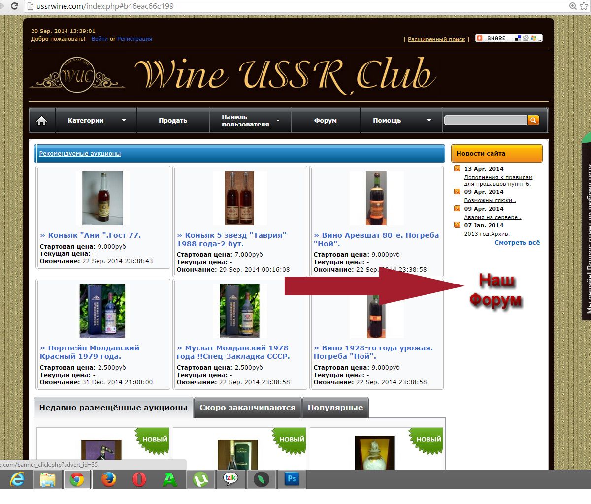 Временно ,пока программист разбирается , я сам подвесил временный баннер перехода на форум с аукциона .