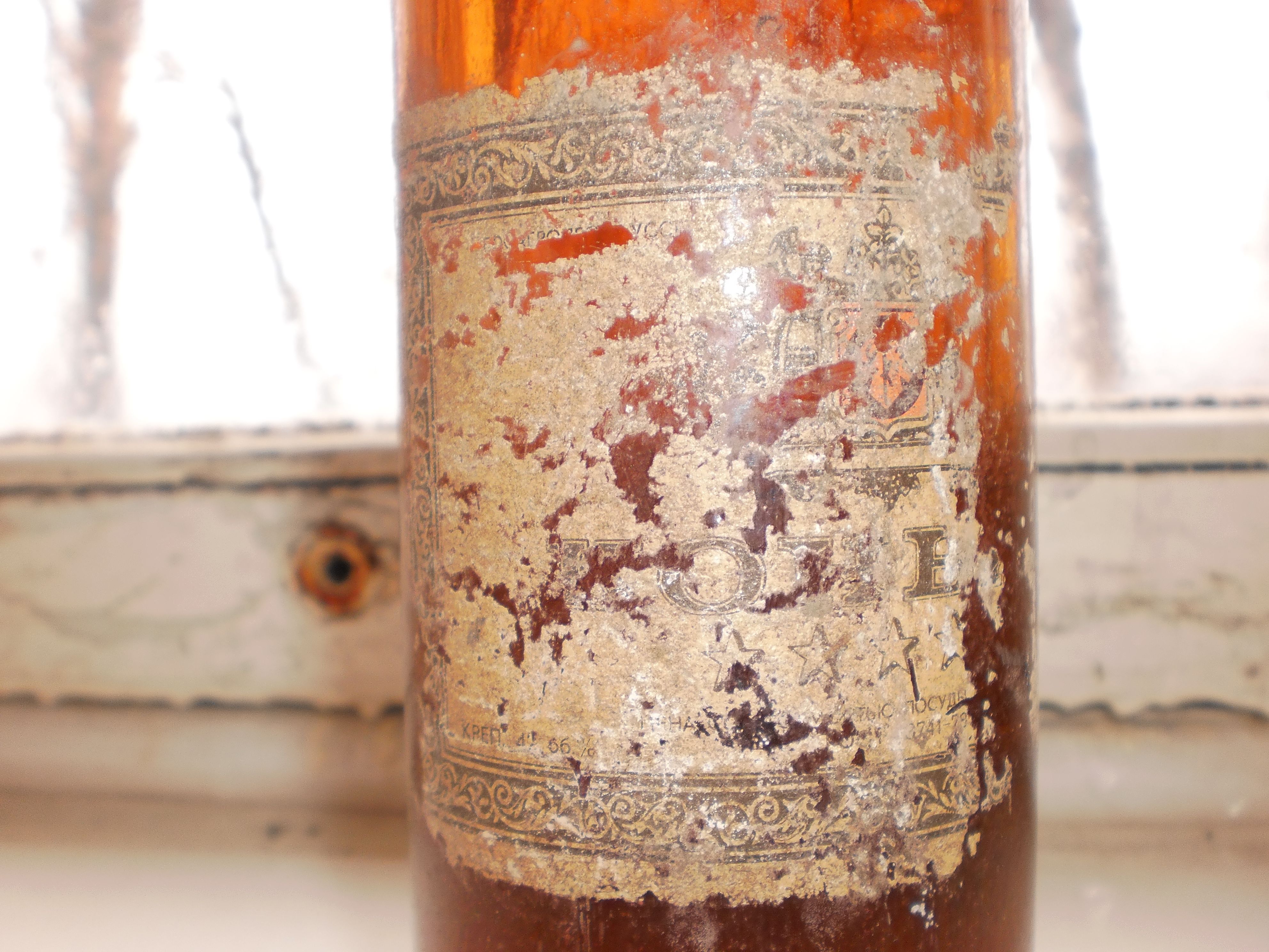Здравствуйте! Помогите пожалуйста оценить коньяк. Хранился в погребе гаража дедушки. Недавно начали там наводить порядок и нашли.
