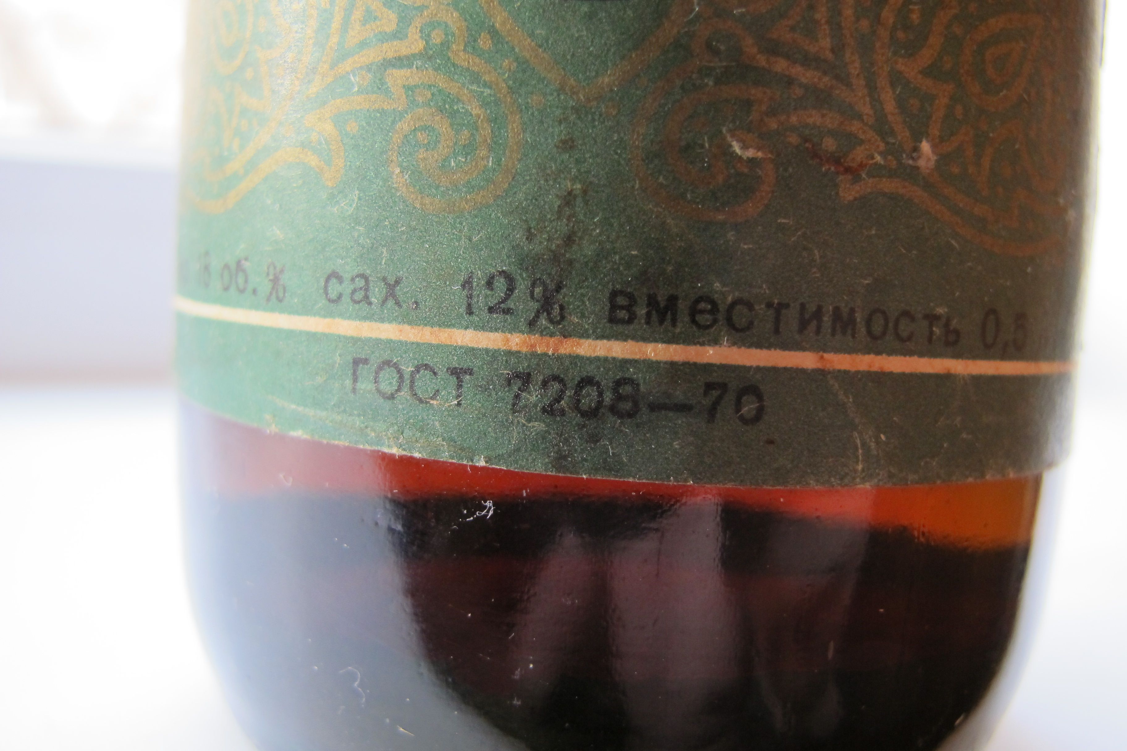Текст на этикетке: Крепость 18%, сахар 12%, вместимость 0,5 л.