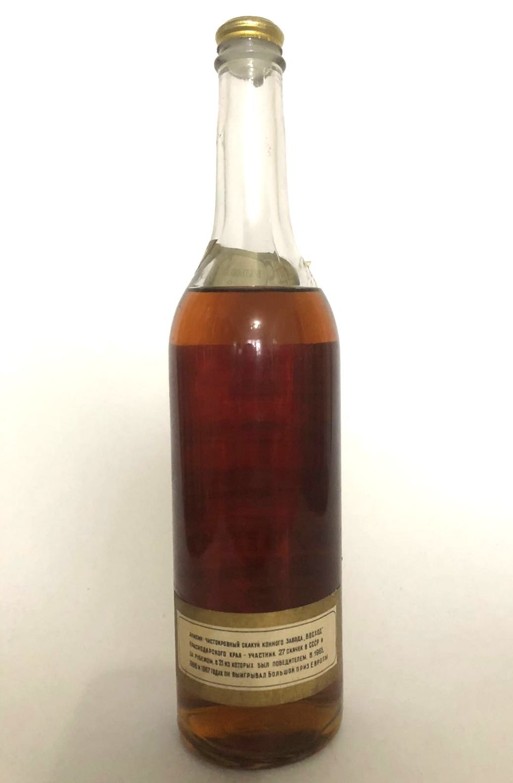 На бутылке, на оборотной стороне, есть такая надпись (не сфоткал) - "Анилин - чистокровный скакун конного завода "Восход" Краснодарского края - участник 27 скачек в СССР и за рубежом, в 21 из которых был победителем. В 1965, 1966 и 1967 годах он выигрывал Большой приз Европы."