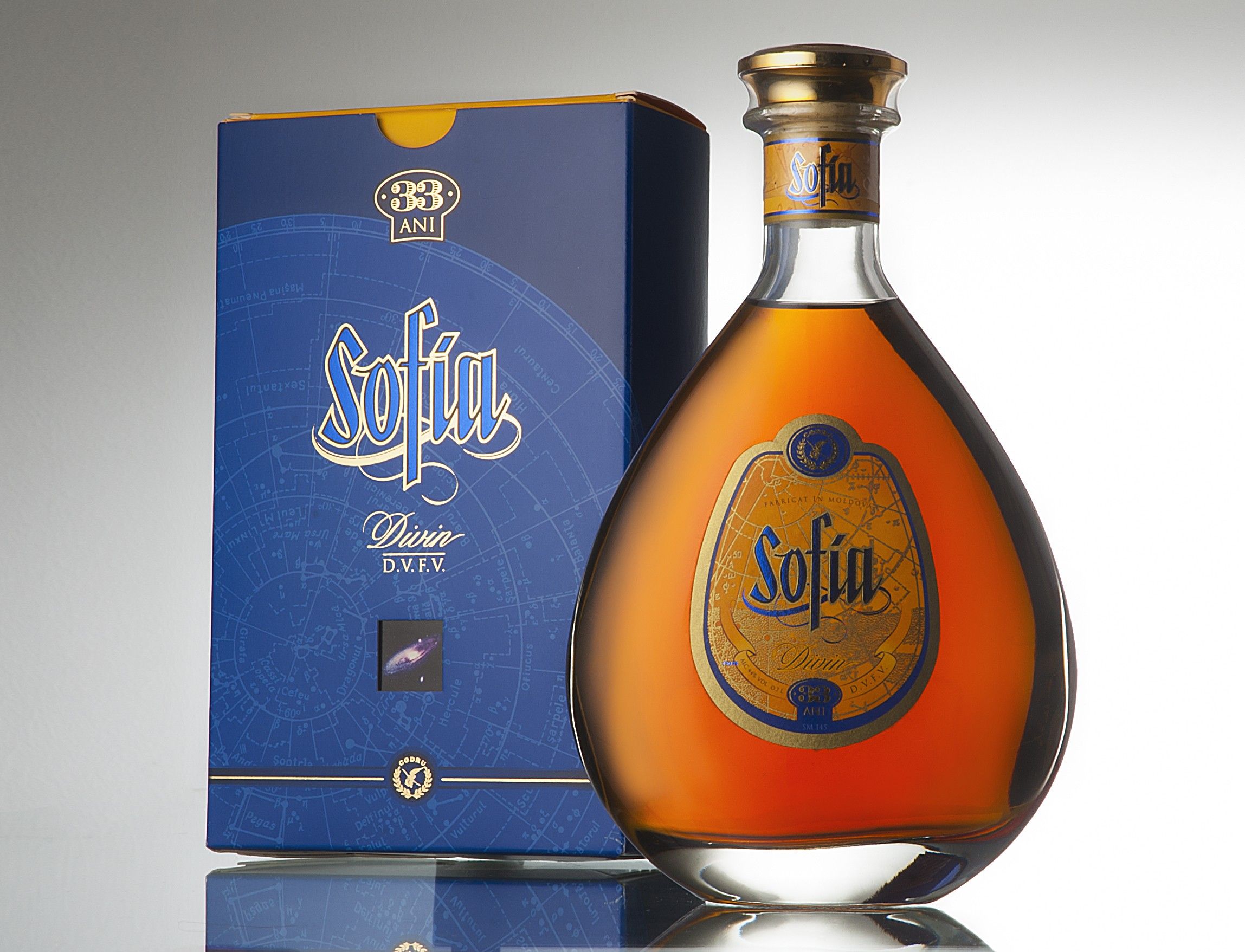 «София» - в переводе с греческого означает „мудрая.Коньяк SOFIA производится с 1999 года из выдержанных в дубовых бочках винных дистиллятов среднего возраста 33 года. Впитавший в себя вековую мудрость дуба И энергию солнечного света, коньяк SOFIA, словно сверкающий бриллиант в обрамлении ЗЗ-х звезд, постепенно раскрывает все новые грани своей неповторимости. Тонкость, женственность и элегантность букета в сочетании с мягким полным вкусом и нарядным темно-янтарным цветом оставляют неизгладимое впечатление. Алк. 44% об. 0,7 L