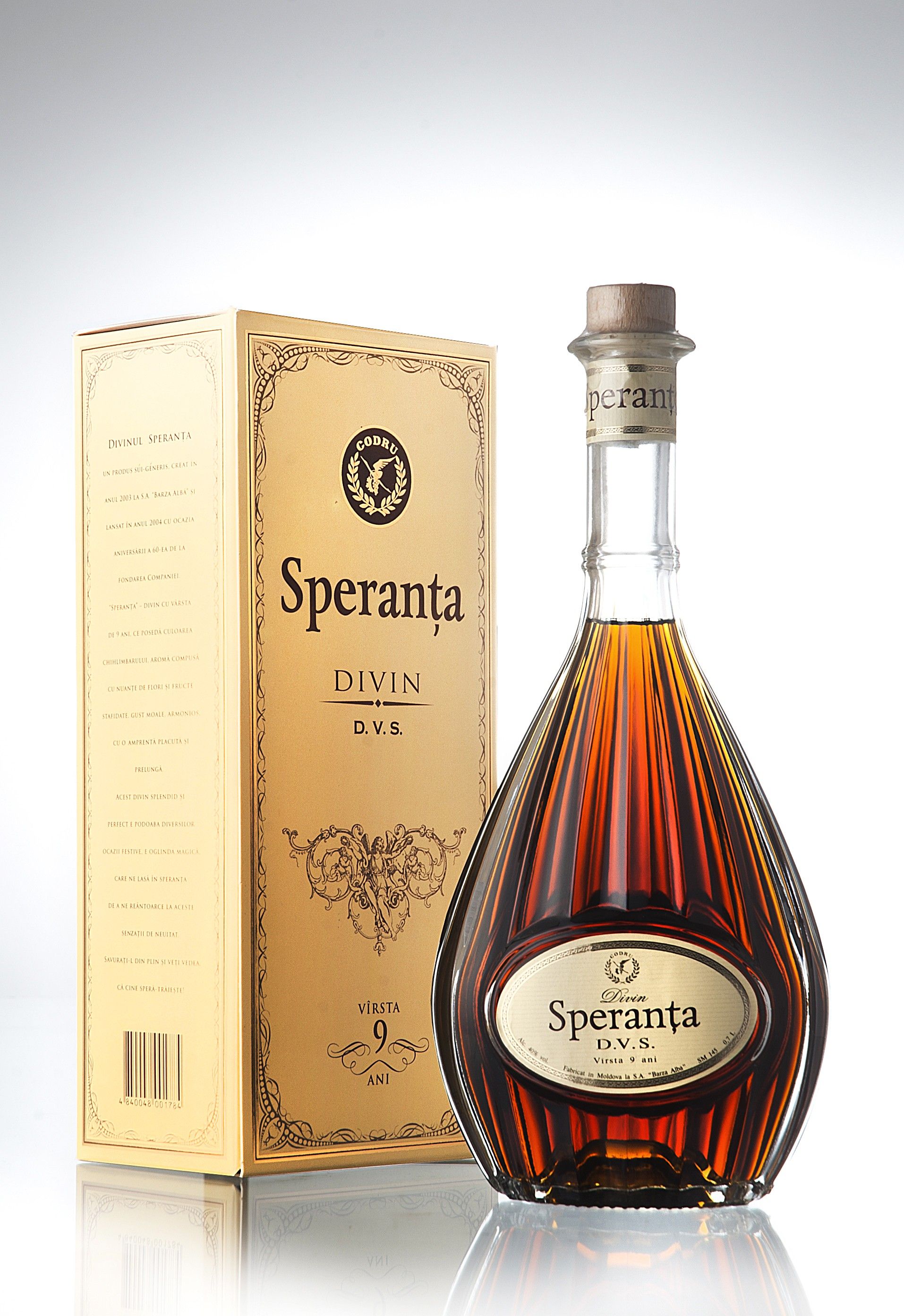 Являющийся эксклюзивной маркой А.О. „Barza Albă", произведён из винных дистиллятов 40-летней выдержки.Цвет темно-янтарный, глянцевый, придает ему праздничный вид , а богатый букет старого коньяка,гармонично сочетается с экстрактивным и устойчивым вкусом.Удивительная композиция качества, гармонично сочетает в себе ярко выраженный букет очень старого дивина и мягкого вкуса. Отличается впечатляющим и долгим послевкусием.CHISINAU WINES & SPIRITS CONTEST'2015 - Гран При.