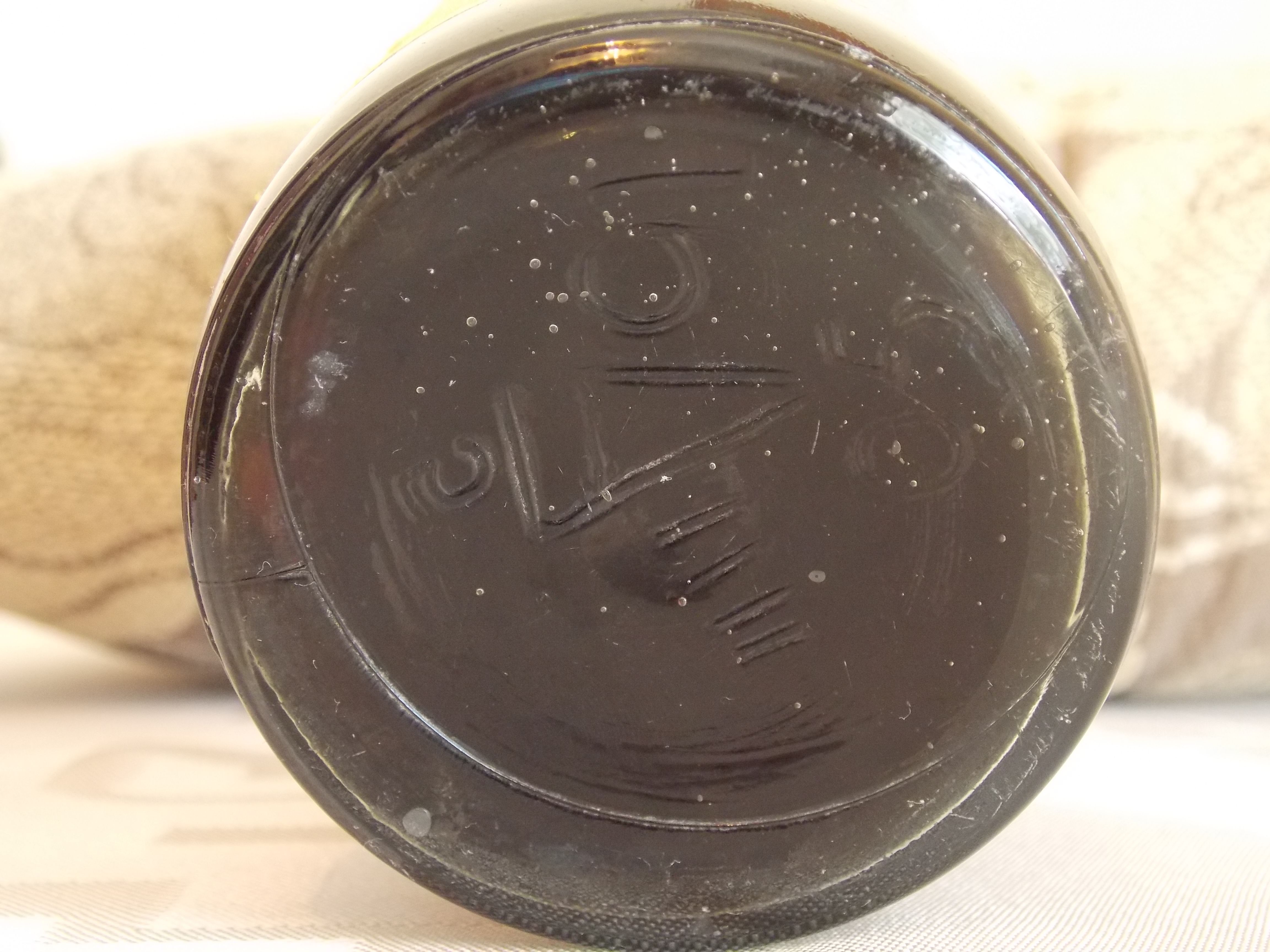 по-моему, это недавний новодел - бумага простая, принтер струйный, от клея краска потекла. про фольгу и бутылку молчу.