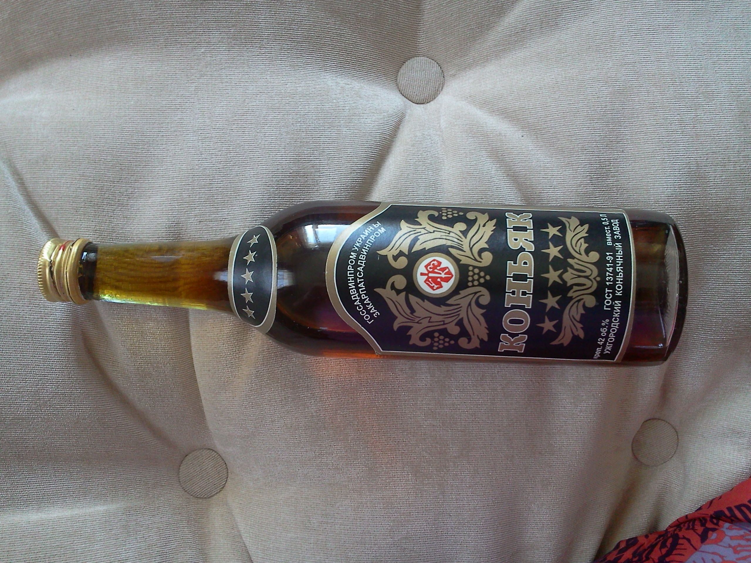 всем добрый день . попалась вот такая бутылка коньяка - что скажите что- то стоит или дорог как память . пробка прорезана но не протекает