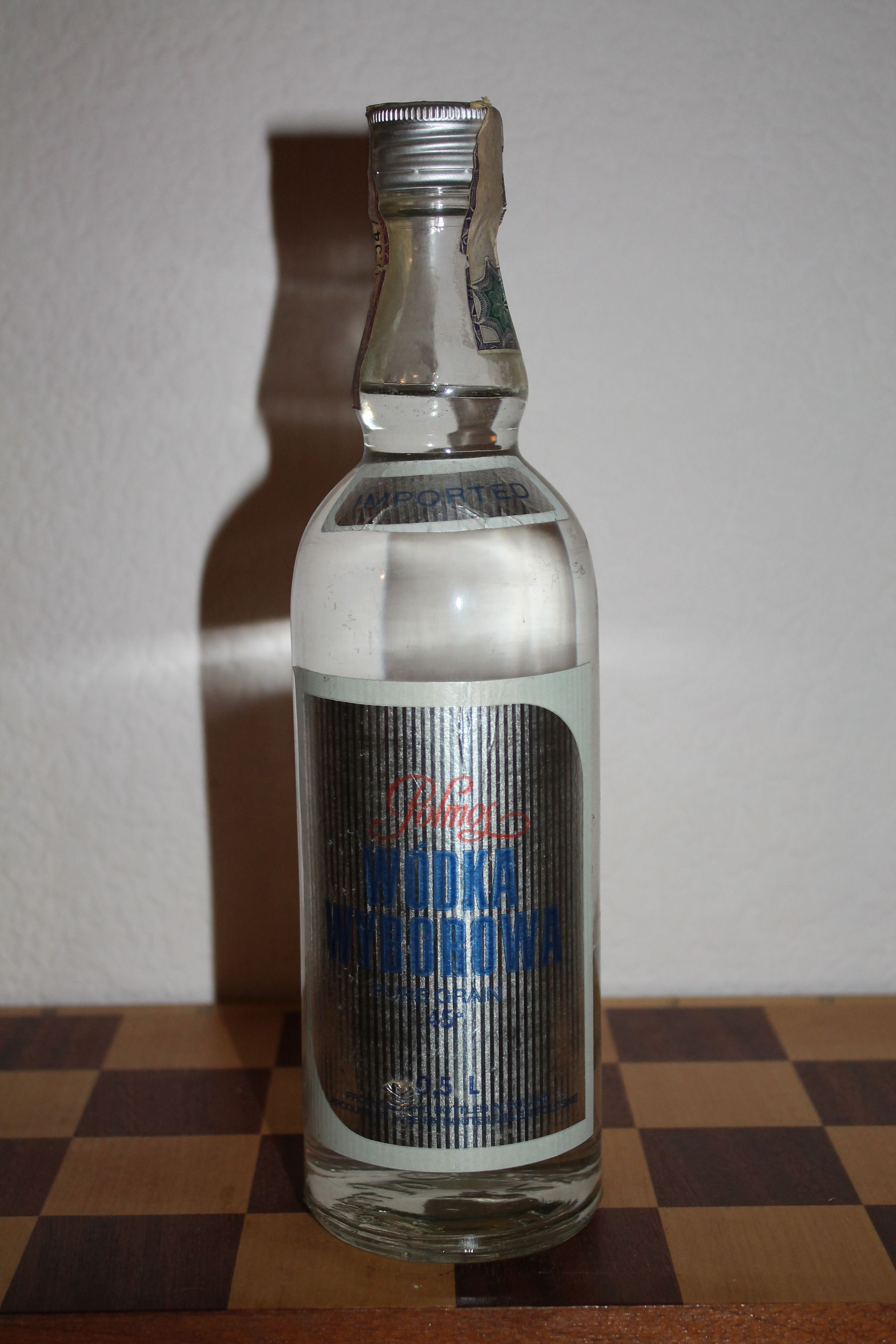Polmos. Водка "Отборная" (Wódka Wyborowa). Еще одна польская классика, уходящая своими корнями в древность. В 1927 году Wyborowa стала первой международной торговой маркой среди водочных. В 1950-60 гг. одна из самых успешных марок на европейском рынке. Достаточно сказать, что на нее приходилось в то время около 2/3 импорта водки в Соединенное Королевство. Данный экземпляр тоже импортный.)