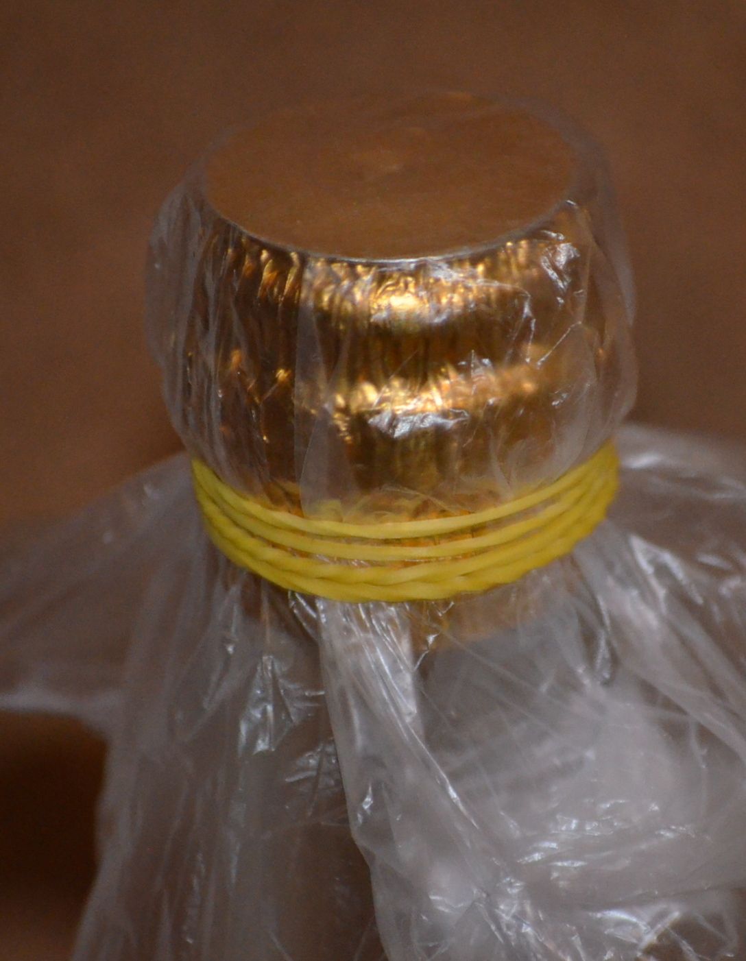 2) Обязательно изолировать горлышко бутылки . Это можно сделать простой пленкой и банковской резинкой.