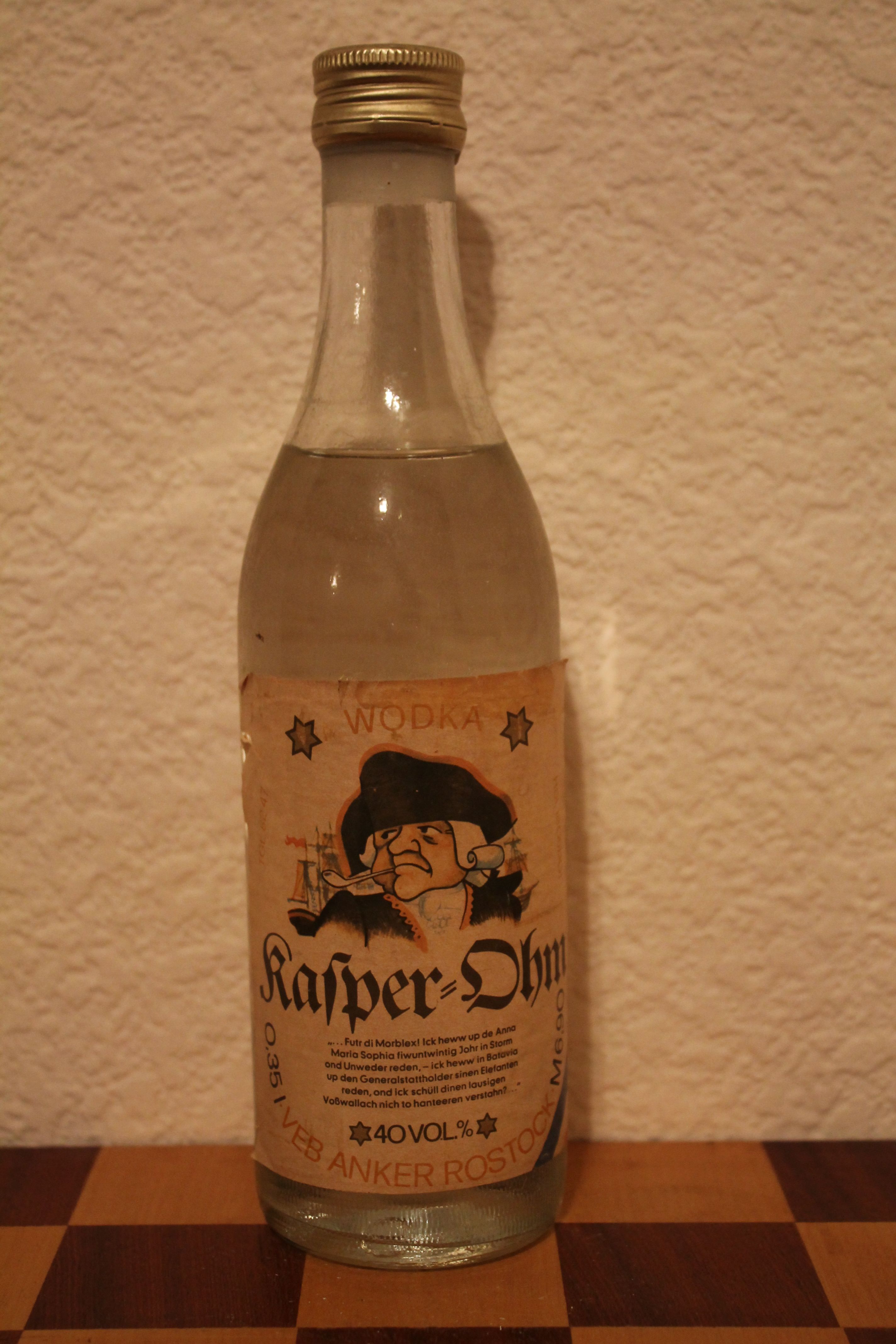 "Литературная" водка. Роман "Каспер-Ом и я" Джона Бринкмана (родом из Ростока), написанный в 1855-1868 гг. на нижненемецком наречии (платтдойтч, очень близком к голландскому), стал одним из выдающихся произведений севернонемецкой литературы. Приключения отважных моряков описаны с большой достоверностью, а платтдойтч позволил писателю увидеть "морскую" глубину и вникнуть в местные особенности, малодоступные литературному немецкому.