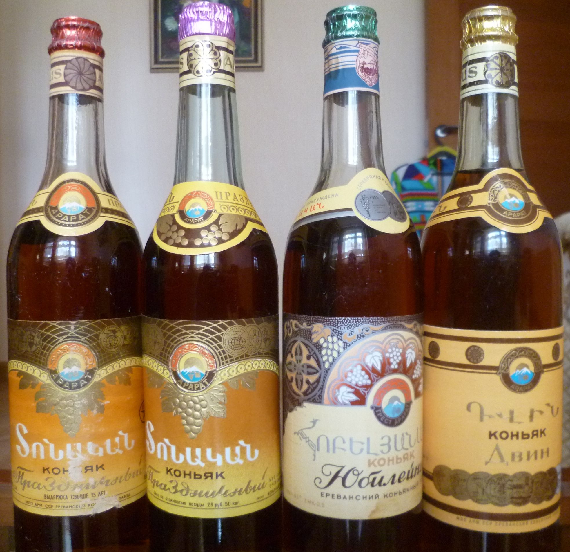 wuc писал(а): Из представленных на последнем фото четырех армянских коньяков, на подлинность претендует второй слева-"Праздничный" .