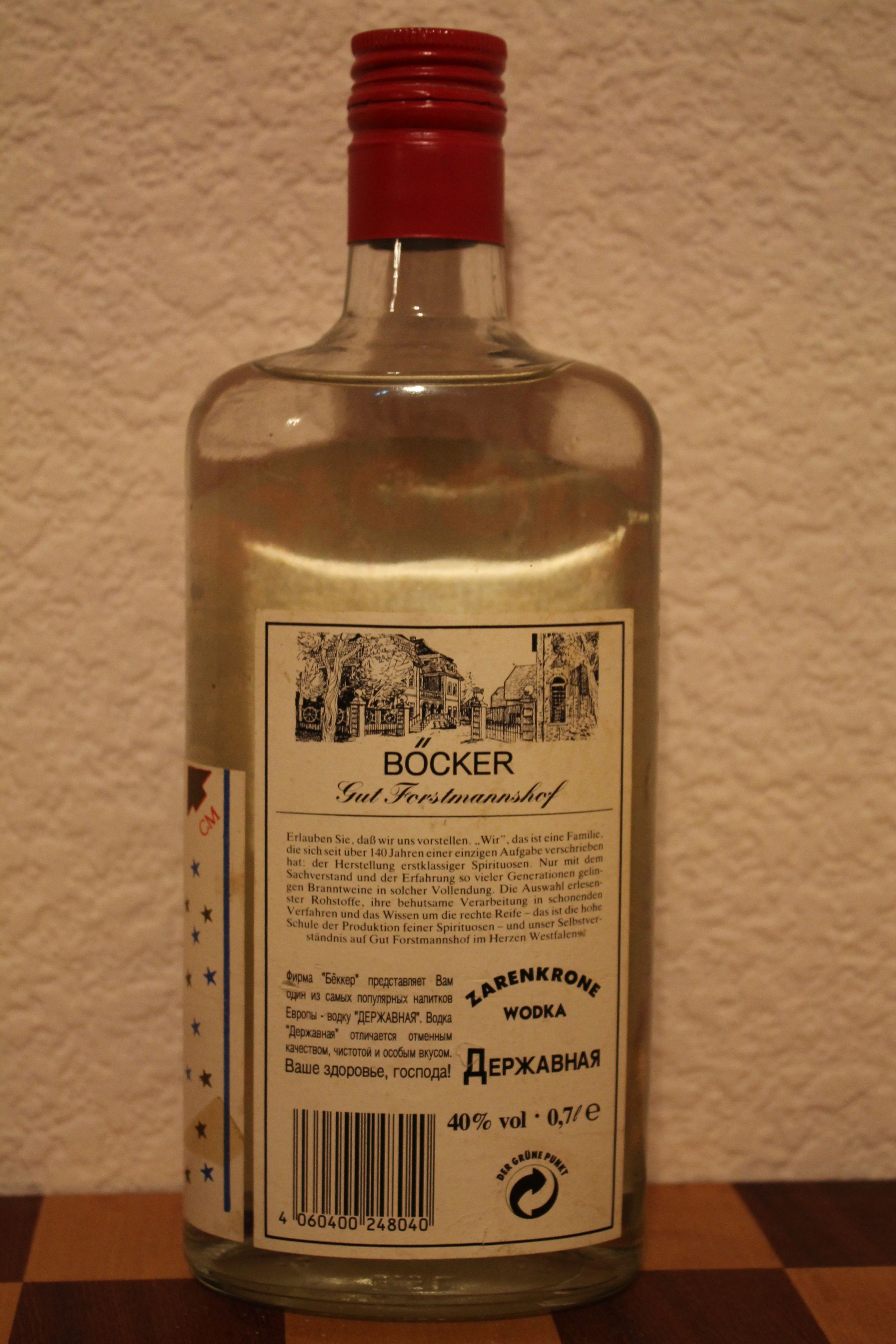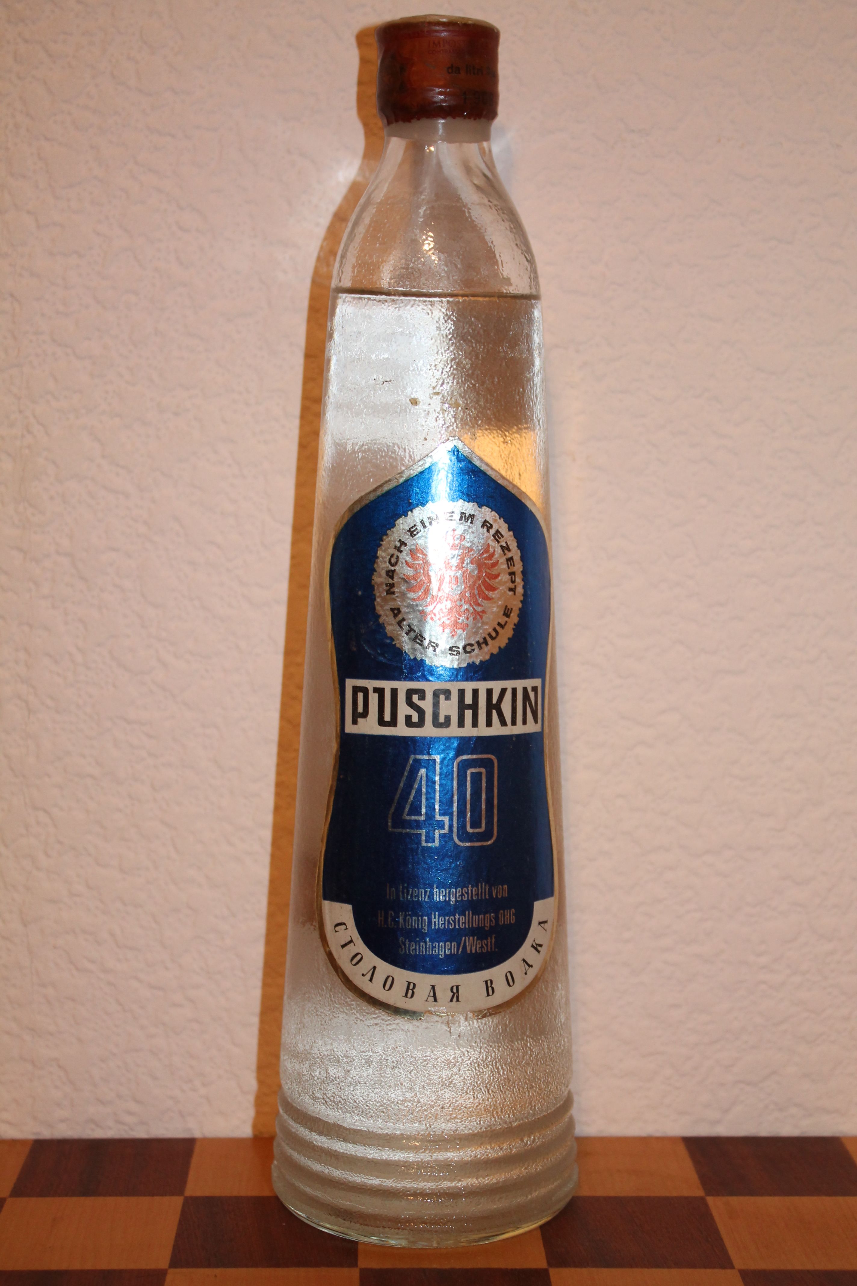 Типичная псевдорусская водка с российской символикой, продукт еще Западной Германии.