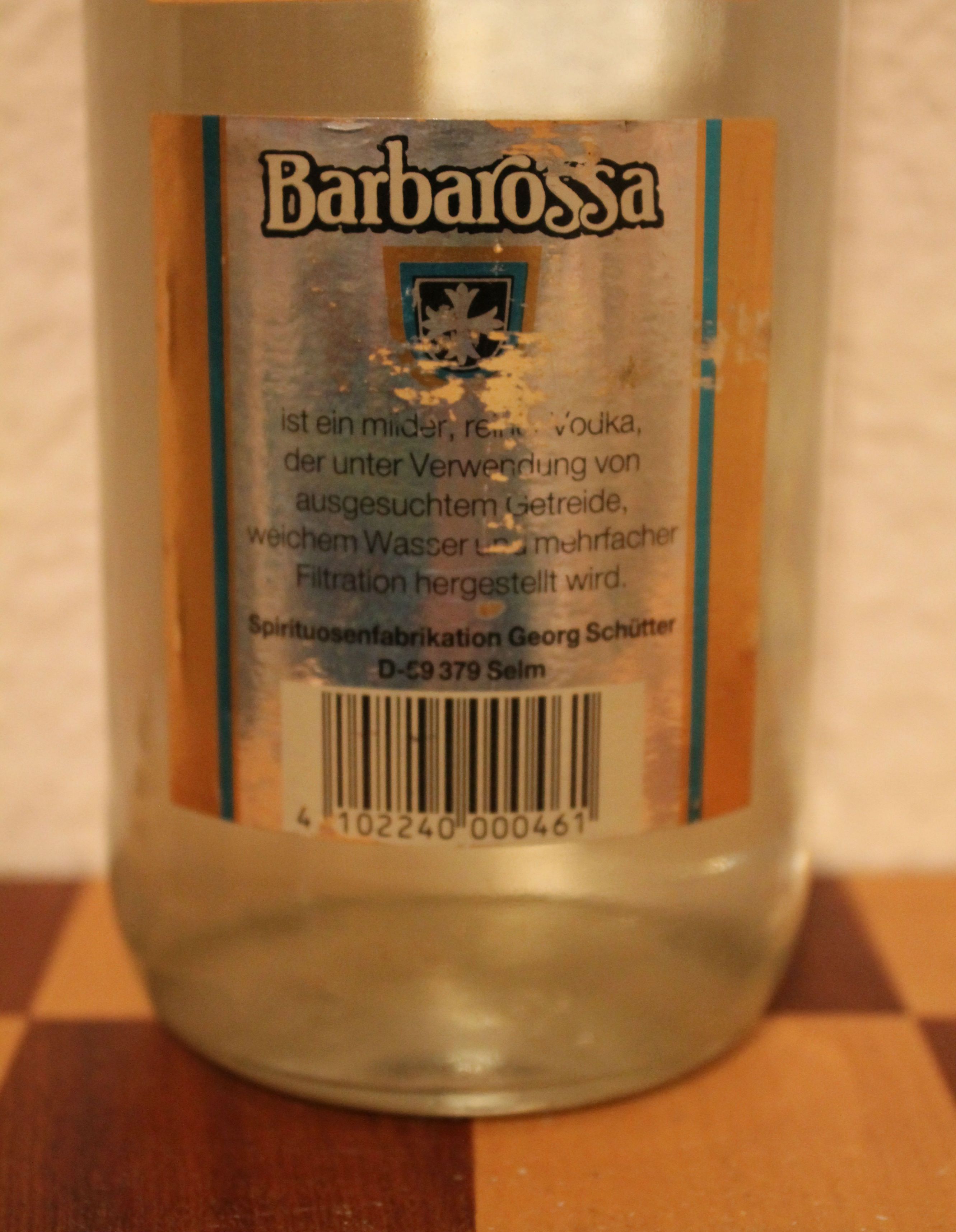 Водка "Барбаросса", спиртзавод Георга Шюттера. 0,7 л.