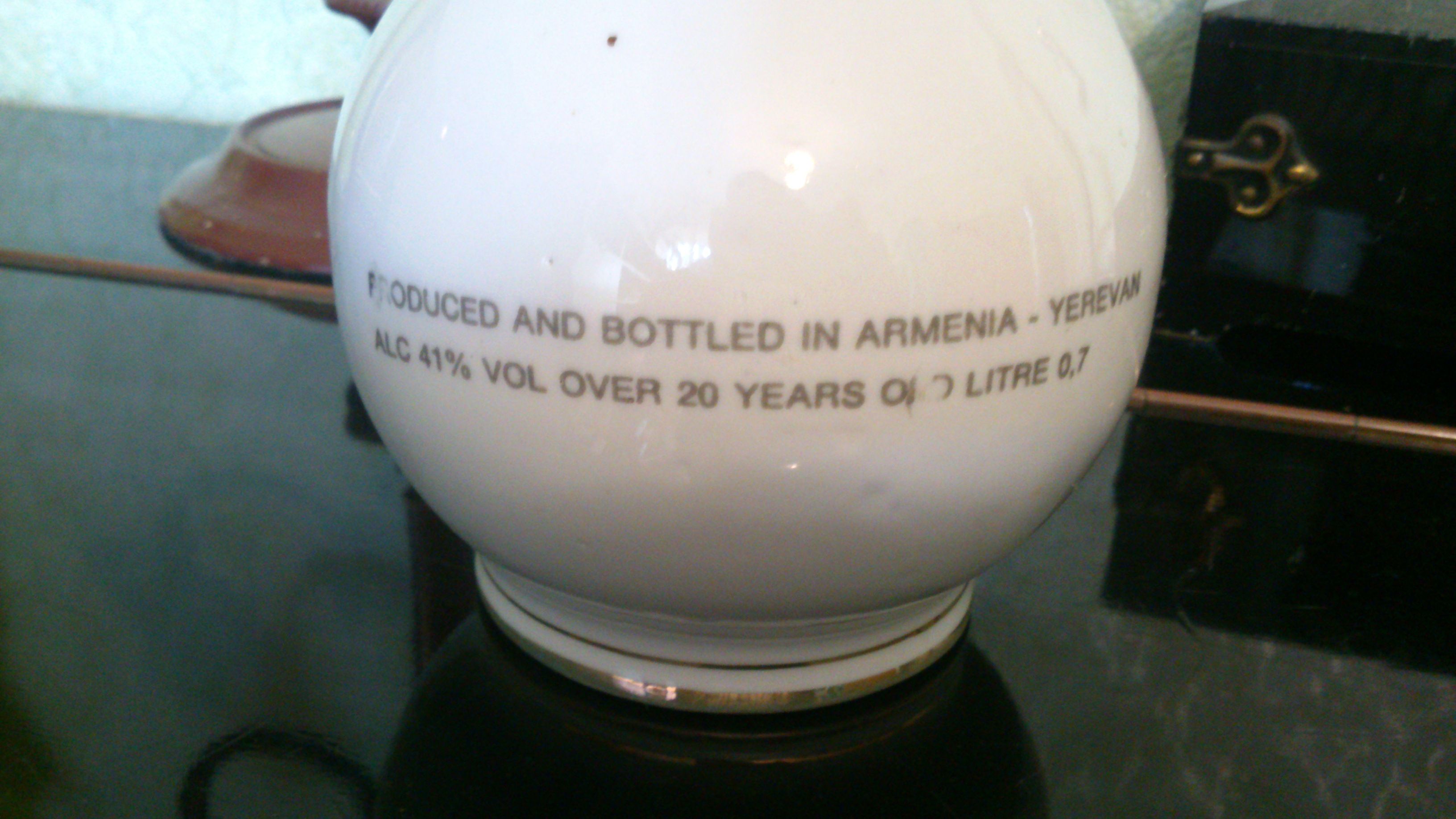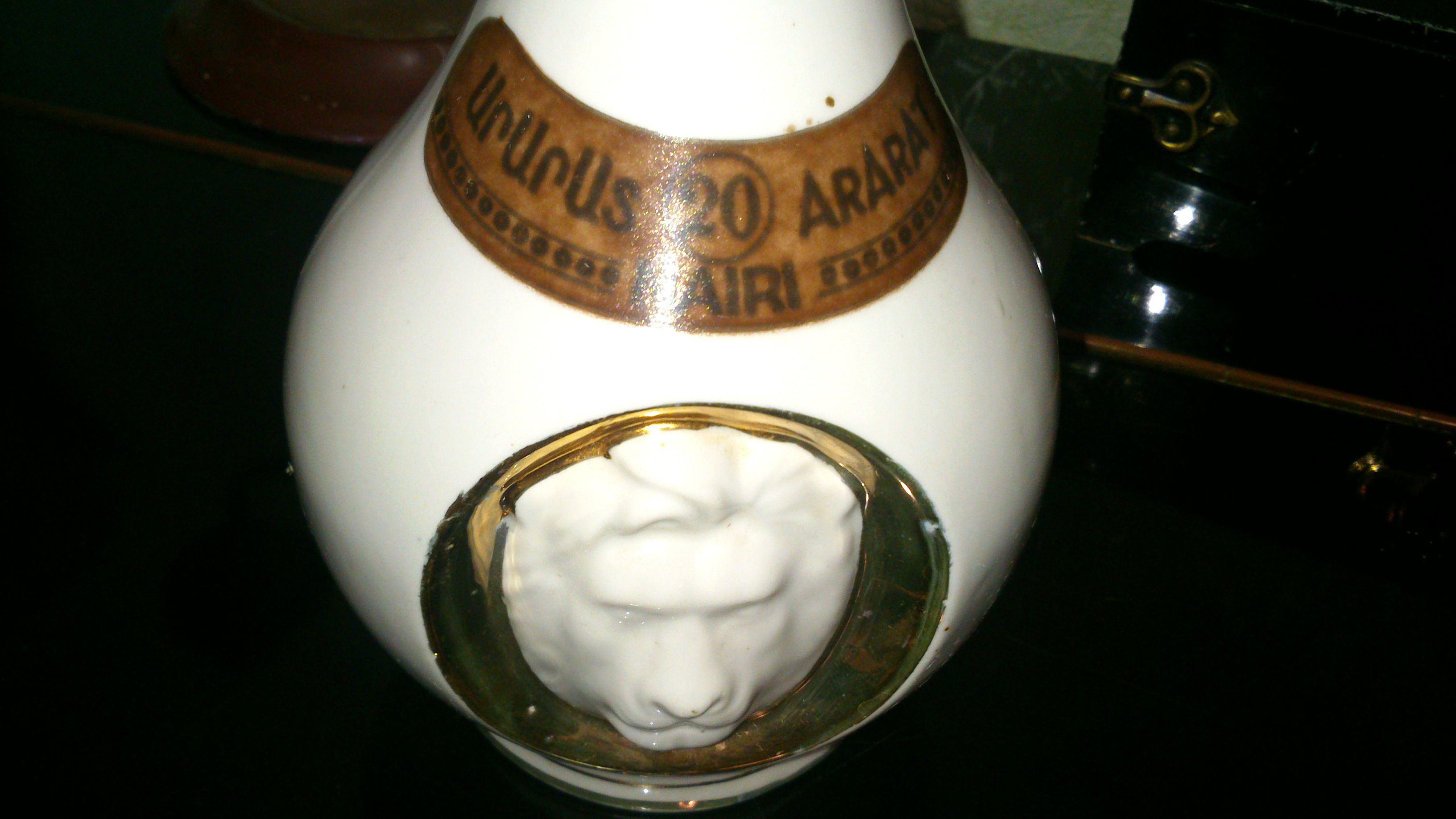 Мне попал в руки один из экземпляров вренен СССР-коньяк Арарат Наири 20 лет в керамической бутылке с головой льва