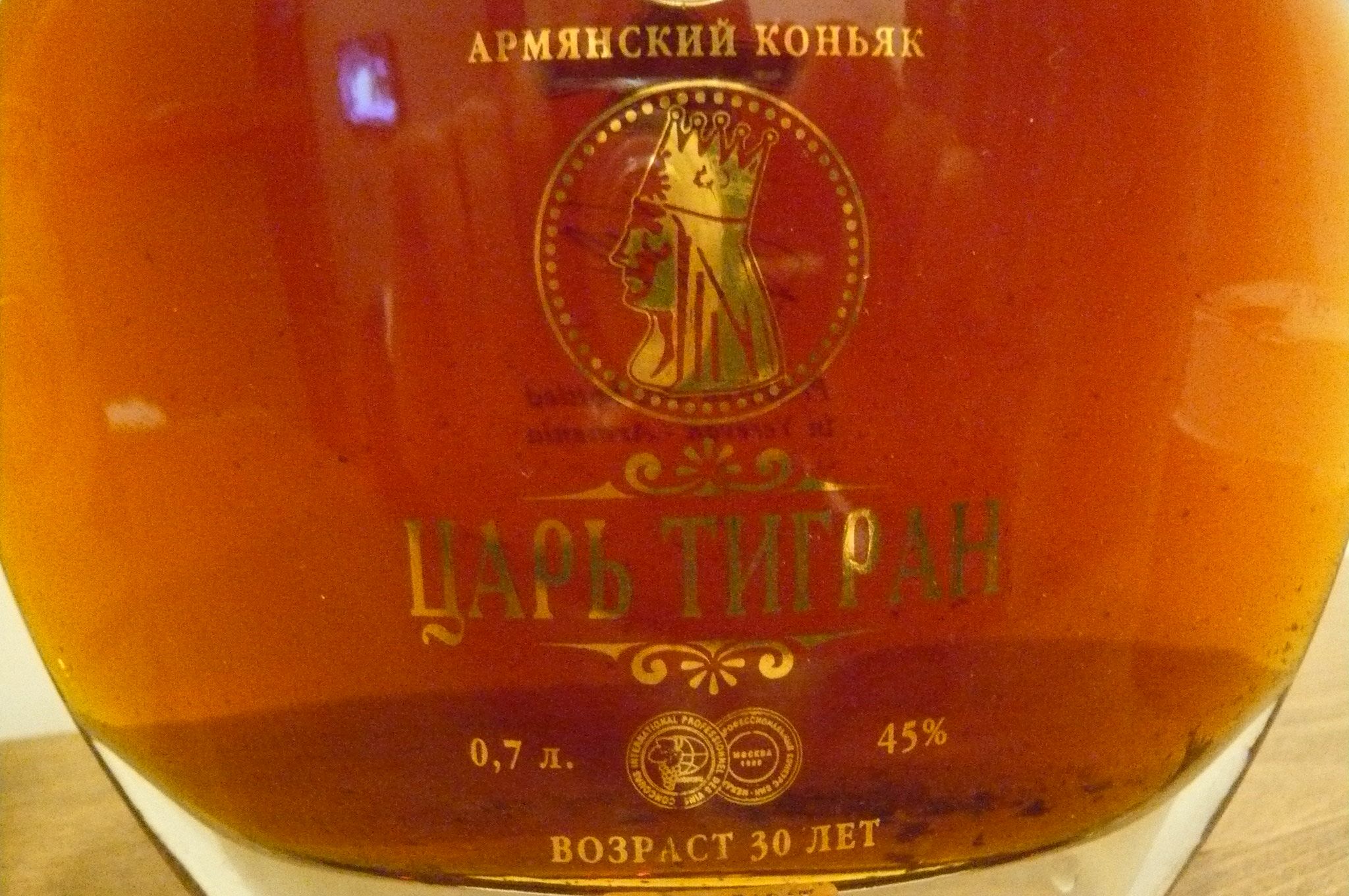 Этот коньяк отличается ярким живым блеском и глубоким каштановым цветом. В экспрессивном букете выразительные ноты мускатного ореха, хлеба и абрикоса переплетаются с мягкими оттенками засахаренных фруктов, ванили, шоколада и дорогого табака. Вкус слегка маслянистый, мягкий и округлый. В длительном сочном послевкусии проявляются тона цветов и пряностей. 30-летний «Царь Тигран» относится к числу лучших и самых ярких армянских коньяков. 30-летний «Царь Тигран» создан для настоящих гурманов, он превосходен в качестве дижестива и отлично сочетается с сигарами.