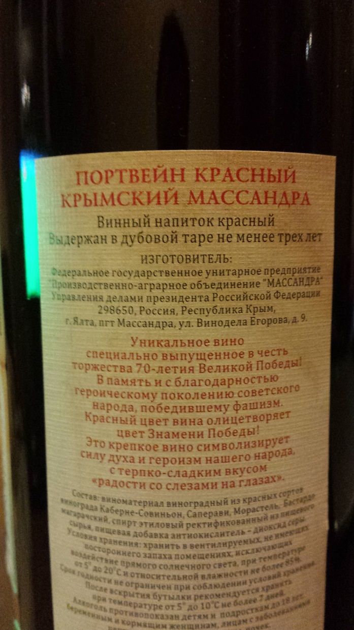 А у меня есть вот такой Портвейн Красный Крымский. Покупал в отпуске в Ялте в 2015 году, на заводе Массандра. Розлив 2015, хранение не менее 3 лет, значит 2012 год урожая.