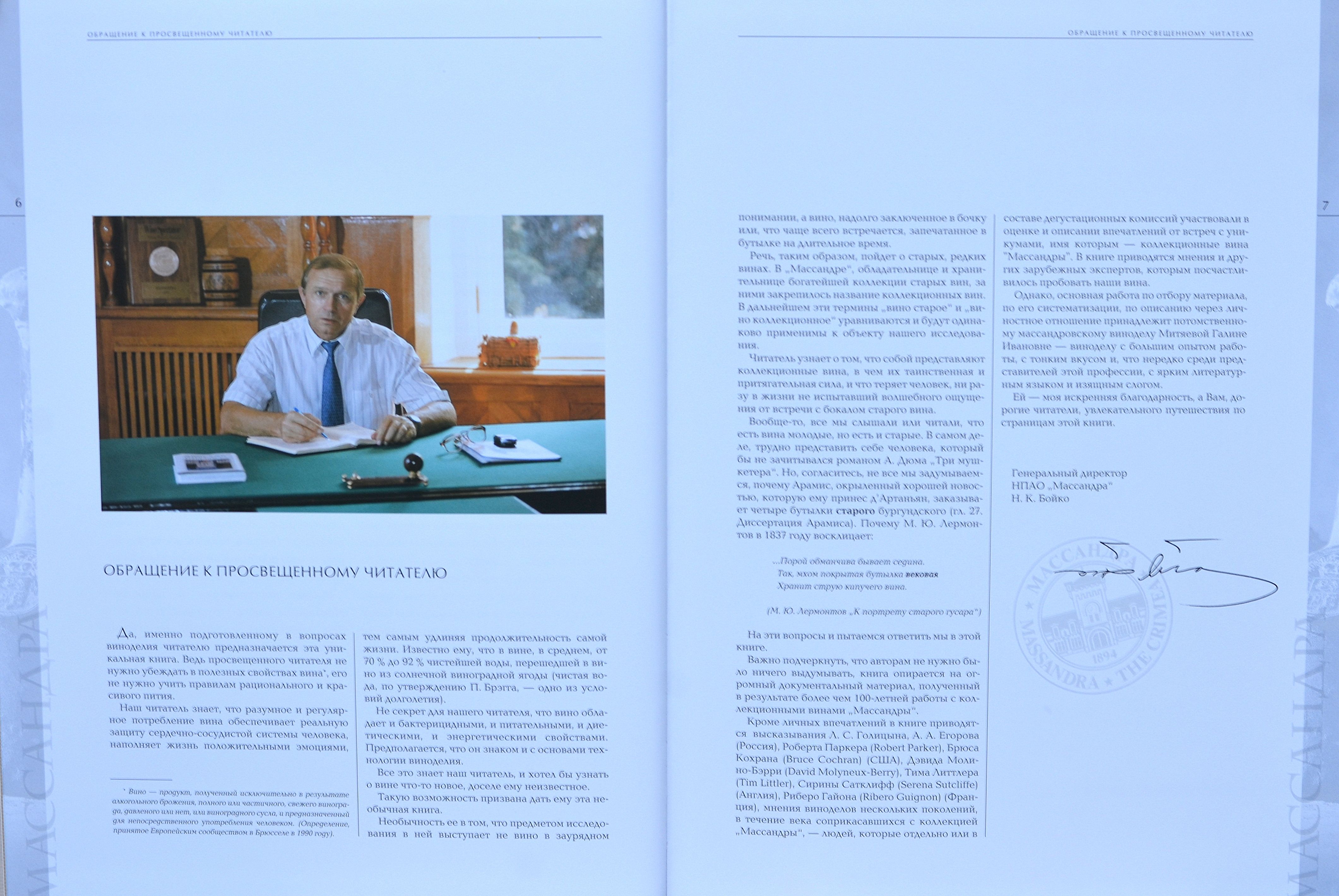 Периодически набирайте в поиске "Коллекционные вина НПАО Массандра" Н.Бойко., Г.Митяева купить -цена" - иногда получается поймать частников, которые продают. А вот последние три экземпляра в запечатанном виде нашлись благодаря Валерию (muscatik) в архиве типографии, которая их выпустила. Там целая операция "но не хрусталь" проводилась, чтобы их привезти. Очень красивая книга, объемная, тяжеленная. Настольная книга коллекционера Массандрыpiligrim писал(а):где такую книгу можно приобрести?