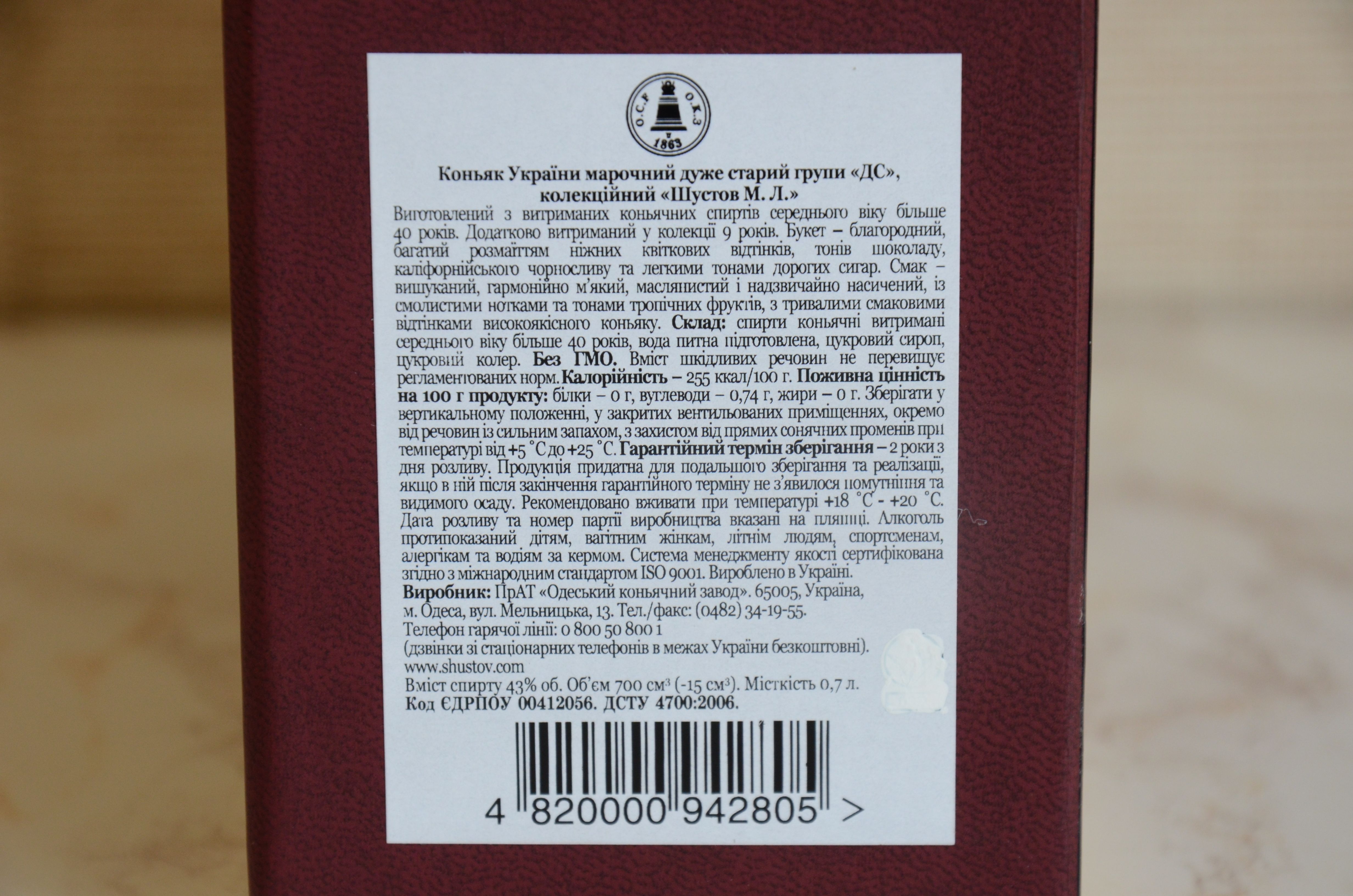 aletis писал(а):Я побывал в музее Шустова в Одессе и могу Вас уверить, что производитель отлично знает все тонкости производства коньяка и понимает о чем пишет в описании.
