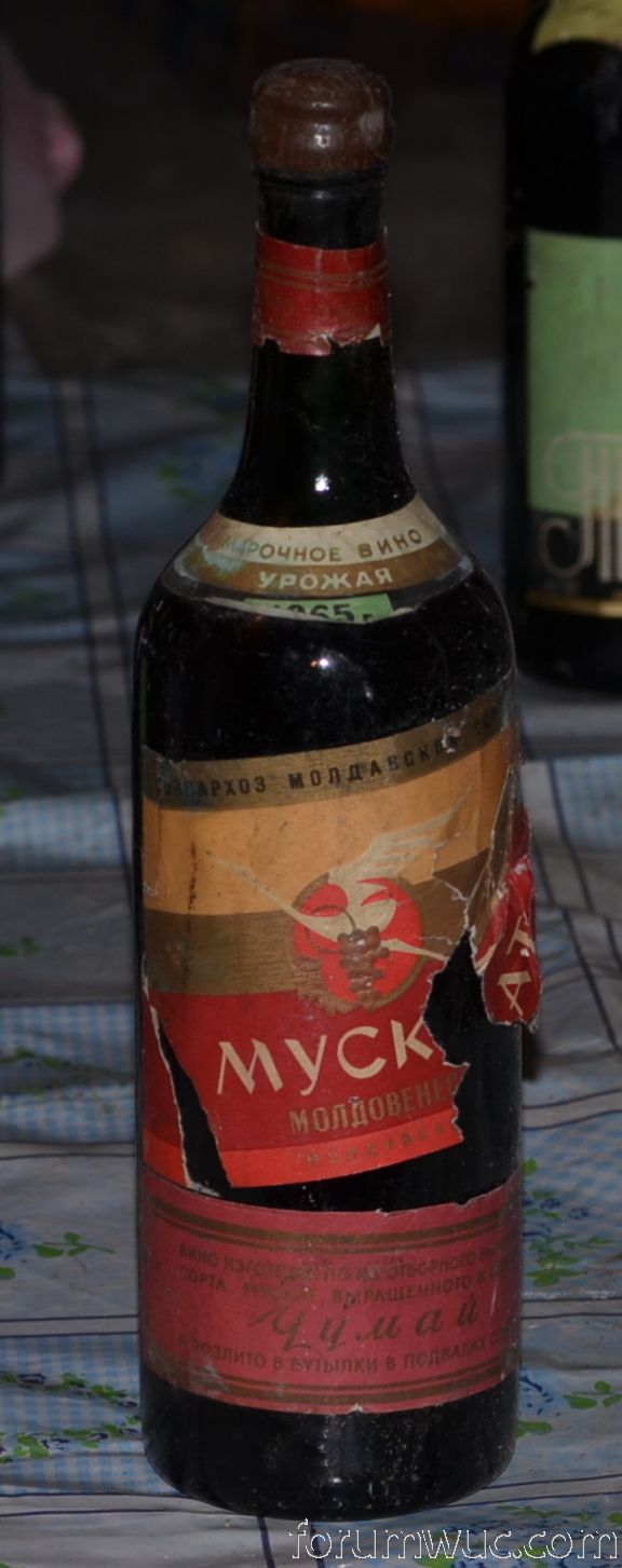 Молдавских мускатов 60-тых мне вообще никогда не попадалось,но вот вчера посчастливилось увидеть эти образцы... Образец Чумайского Завода урожая 1965 года .Попалось бутылок 40-45 ,одна была в довольно таки в состоянии "не ахти " , другие ,как говорят коллекционеры монет в состоянии " UNC" . Я конечно не стал вскрывать эту " капсулу" из полиэтиленового пакета перемотанного проволокой ...,но образцы бесспорно хороши и редки :)Кстати , можно взять на вооружение опыт молдавской энотеки ! Бутылки почти 50-лет пролежали в погребах... и почти все из них как с конвеера.
