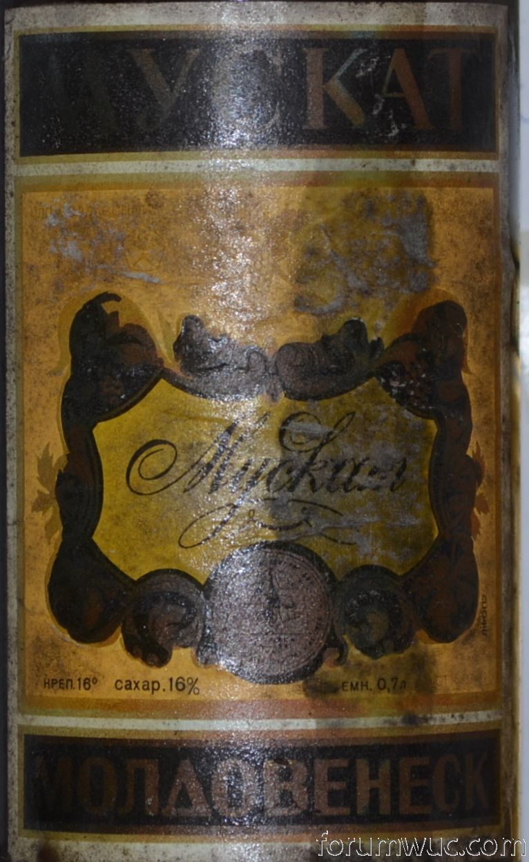 Наиболее знакомый нам Мускат Молдовенеск из коллекционных вин Молдавии это Коллекционный десертный Молдавский Мускат урожая 1978 года предприятия Кожушна-Вин.Розлив 1983.Дно 83 и по документам розлив был тоже в 83-ем.