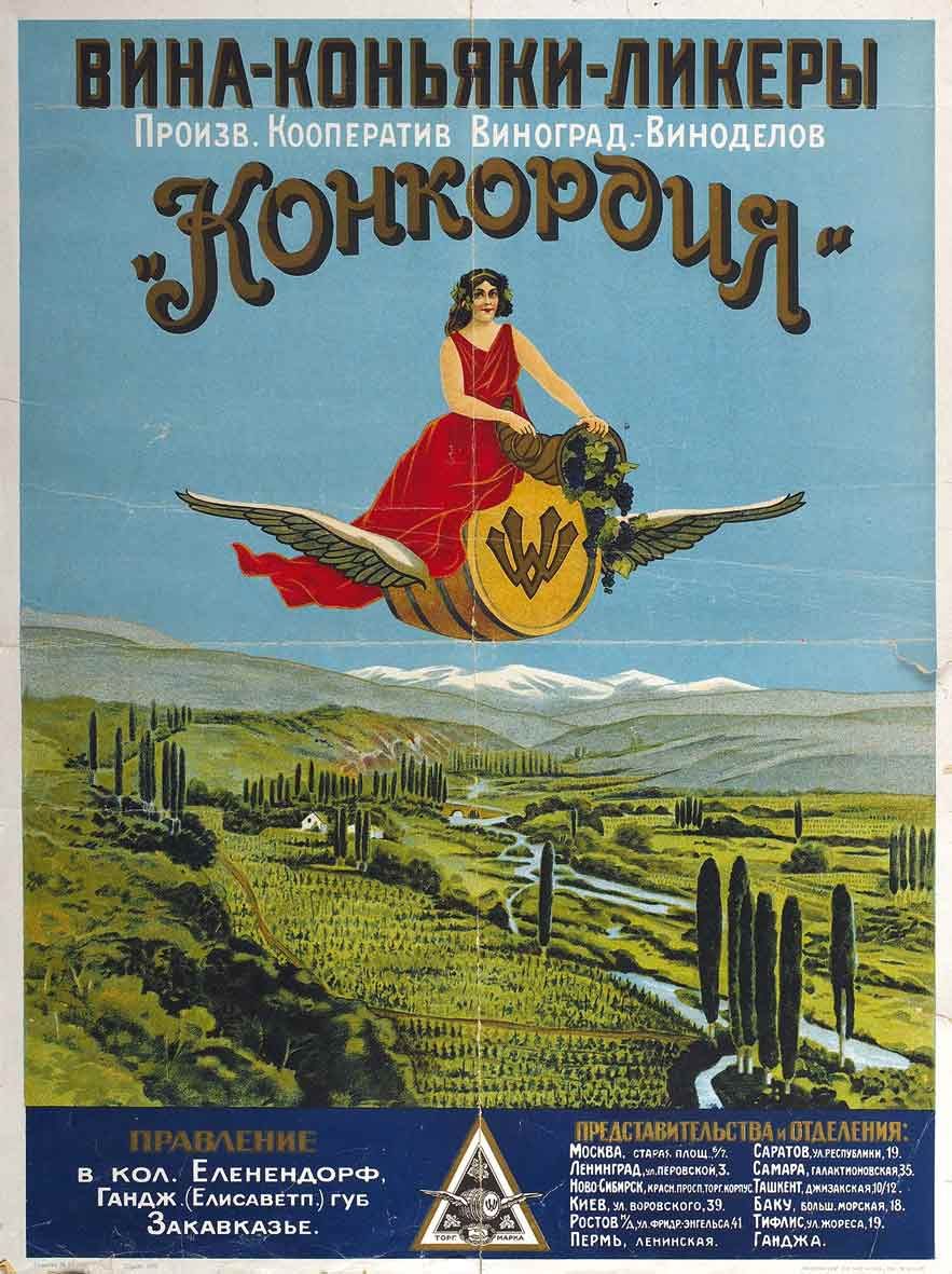 Плакат: Вина - коньяки - ликёры. Производственный Кооператив Виноградарей-Виноделов "Конкордия".