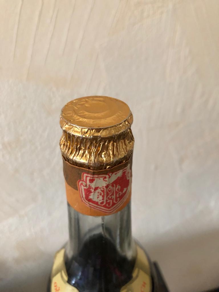 Интересная бутылка 1981 года розлива. С середины 70-х коньяк Тбилиси обычно попадается закрытым пластиковым декоративным колпаком, либо винтовой пробкой в более поздних вариантах конца 80-х.