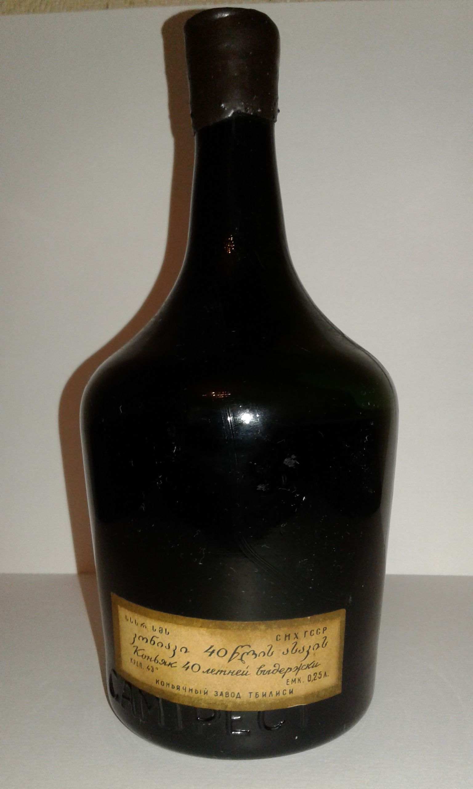 У нас, в Грузии, этот коньяк считается очень редким, жаль что здесь он не ценится. Бутылка 0,5 литра. Я ее не покупал и сургуч не менял.