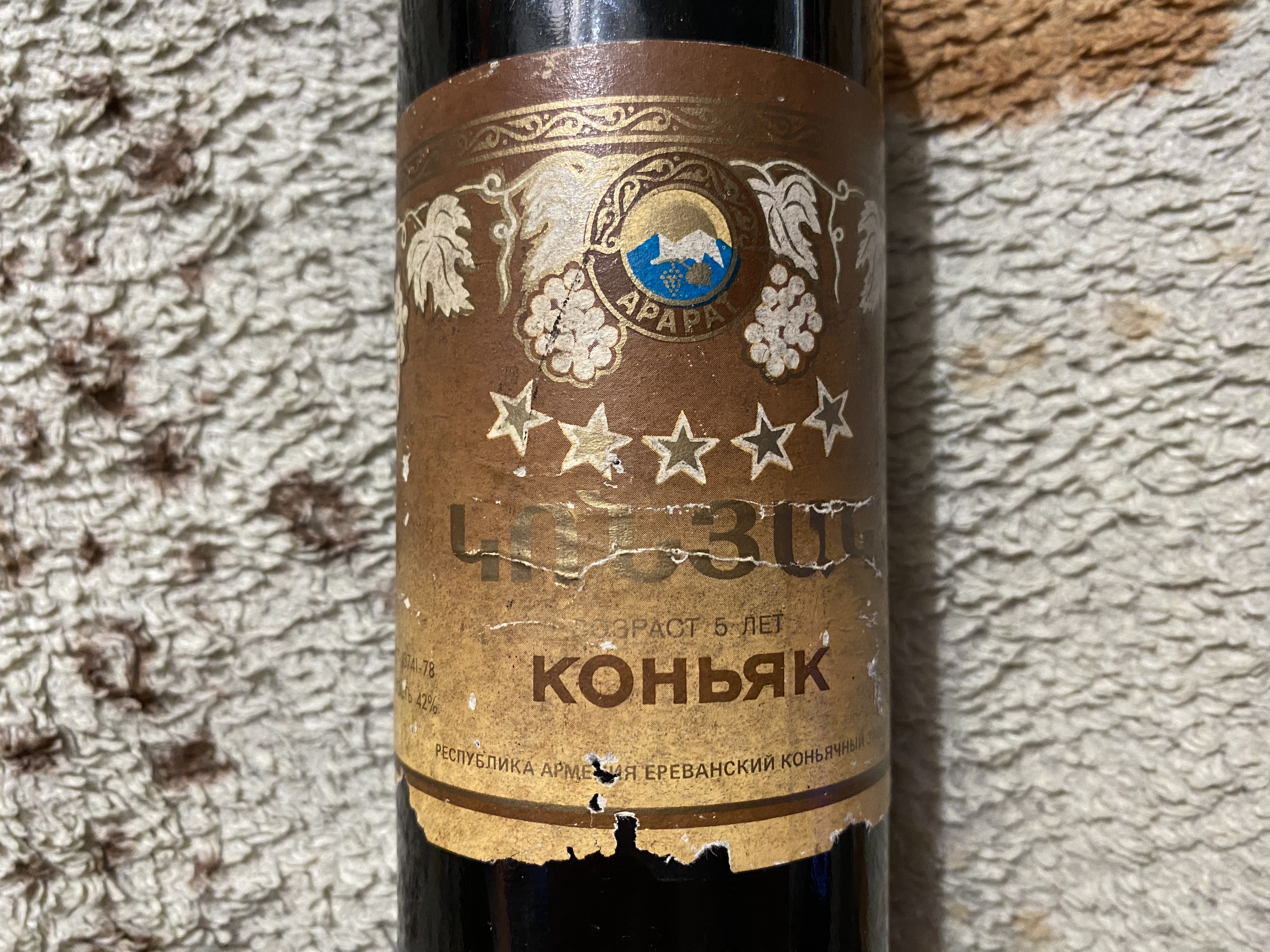 Всем доброго времени суток. В далеком 2003, хороший добрый друг армянин, подарил мне бутылку армянского коньяка Арарат, 5*, «республика армения ереванского коньячного завода»