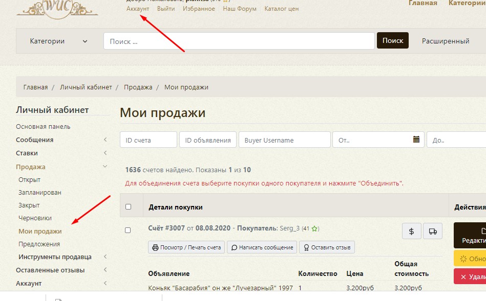 1). Заходим в аккаунт - "мои продажи"
