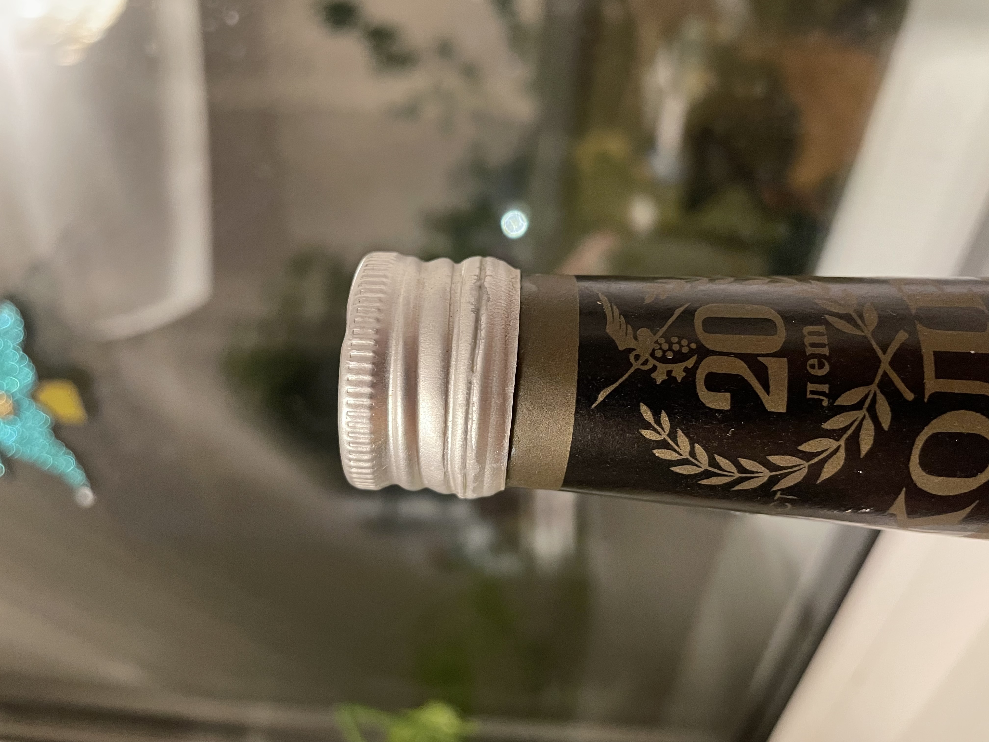 Есть такое ощущение, что и передняя этикетка и пробка выгорели. Задняя этикетка и пробка сзади имеют родной золотистый цвет. Вот такие наблюдения.
