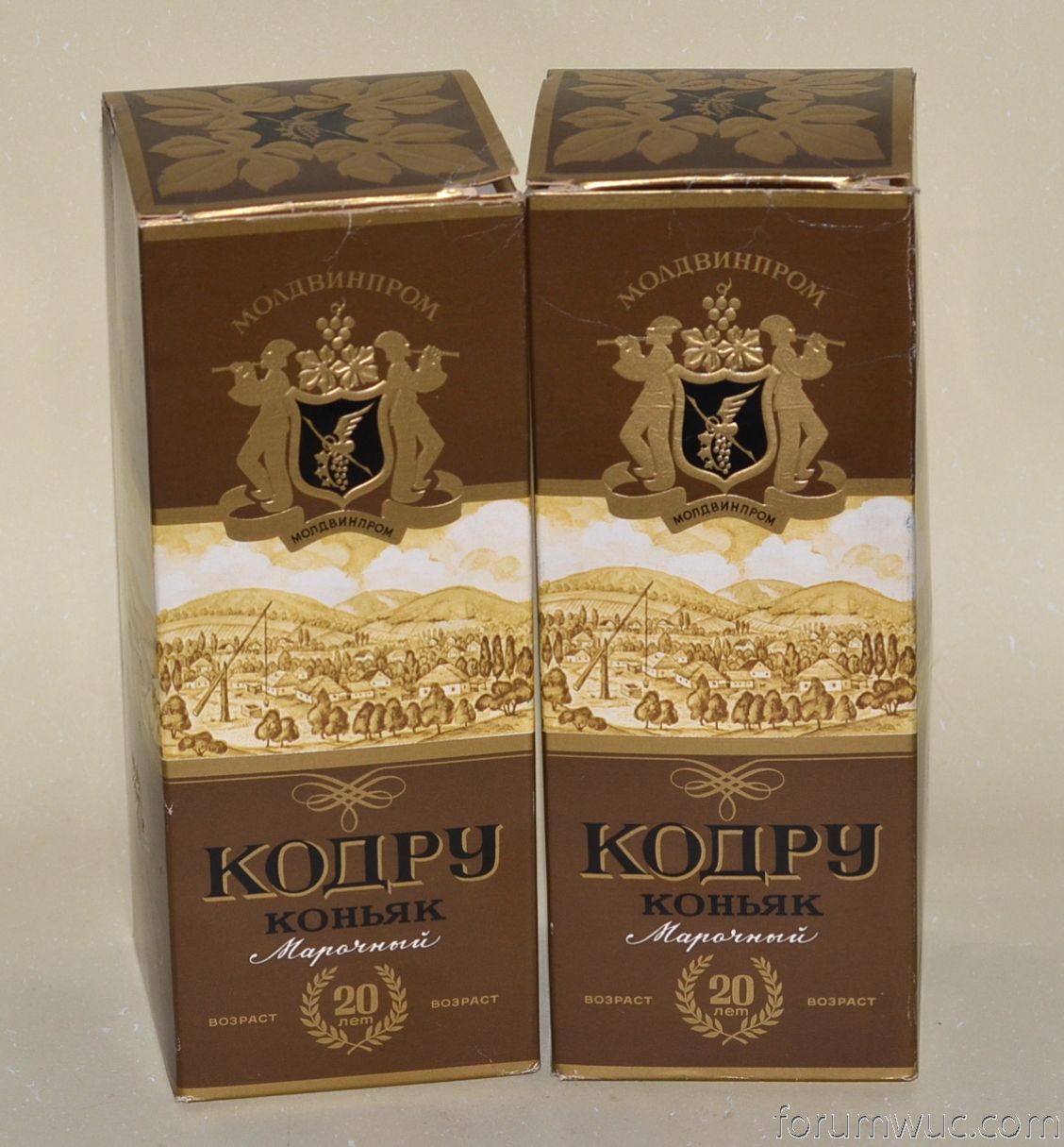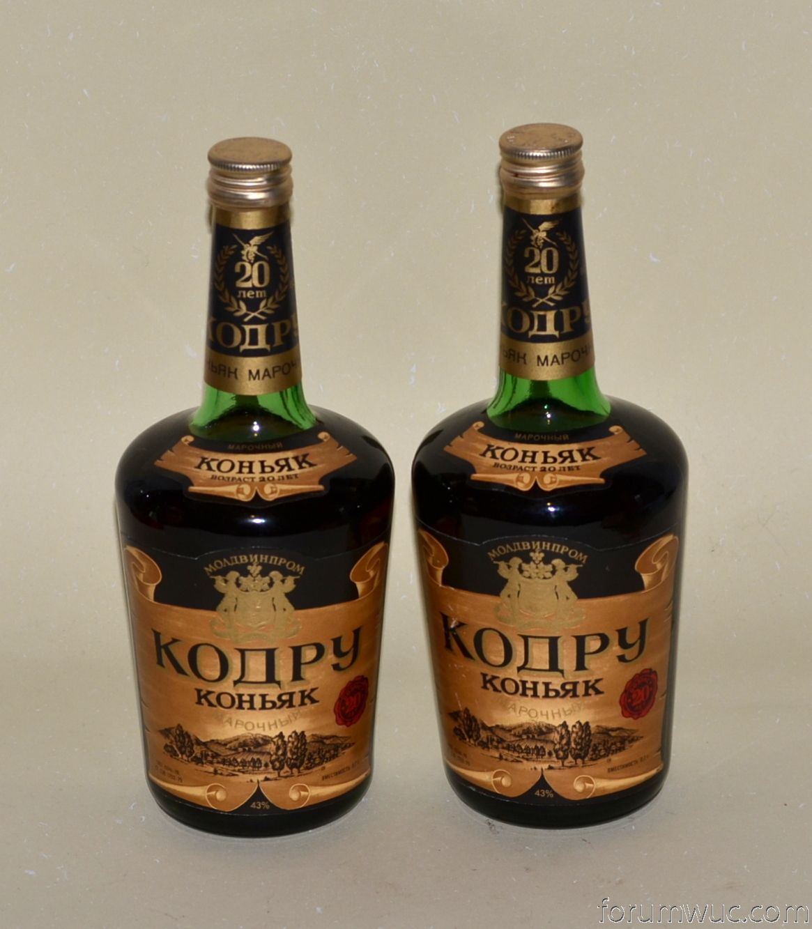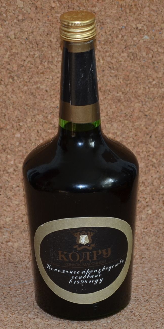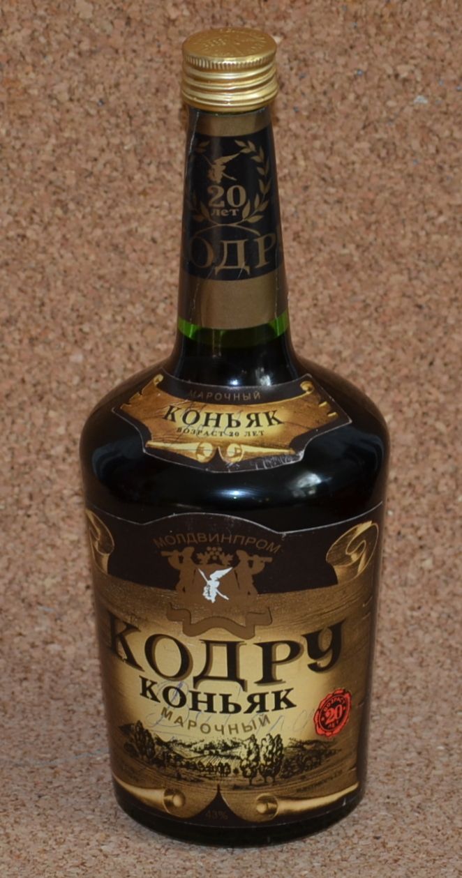 Кодру -приготовлен из коньячных спиртов 20-ти летней выдержки на Бельцком винно-коньячном комбинате к 50-летию Советской власти (1967г). Цвет темно-золотистый ,вкус гармоничный ,полный с хорошо развитым букетом.Награжден 3-мя золотыми медалями .