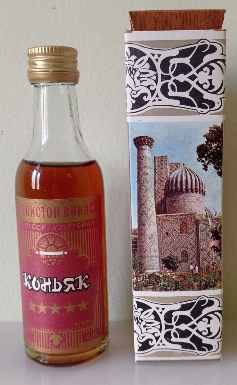 Коньяк узбекский ***** 0,05 л, производитель и период.