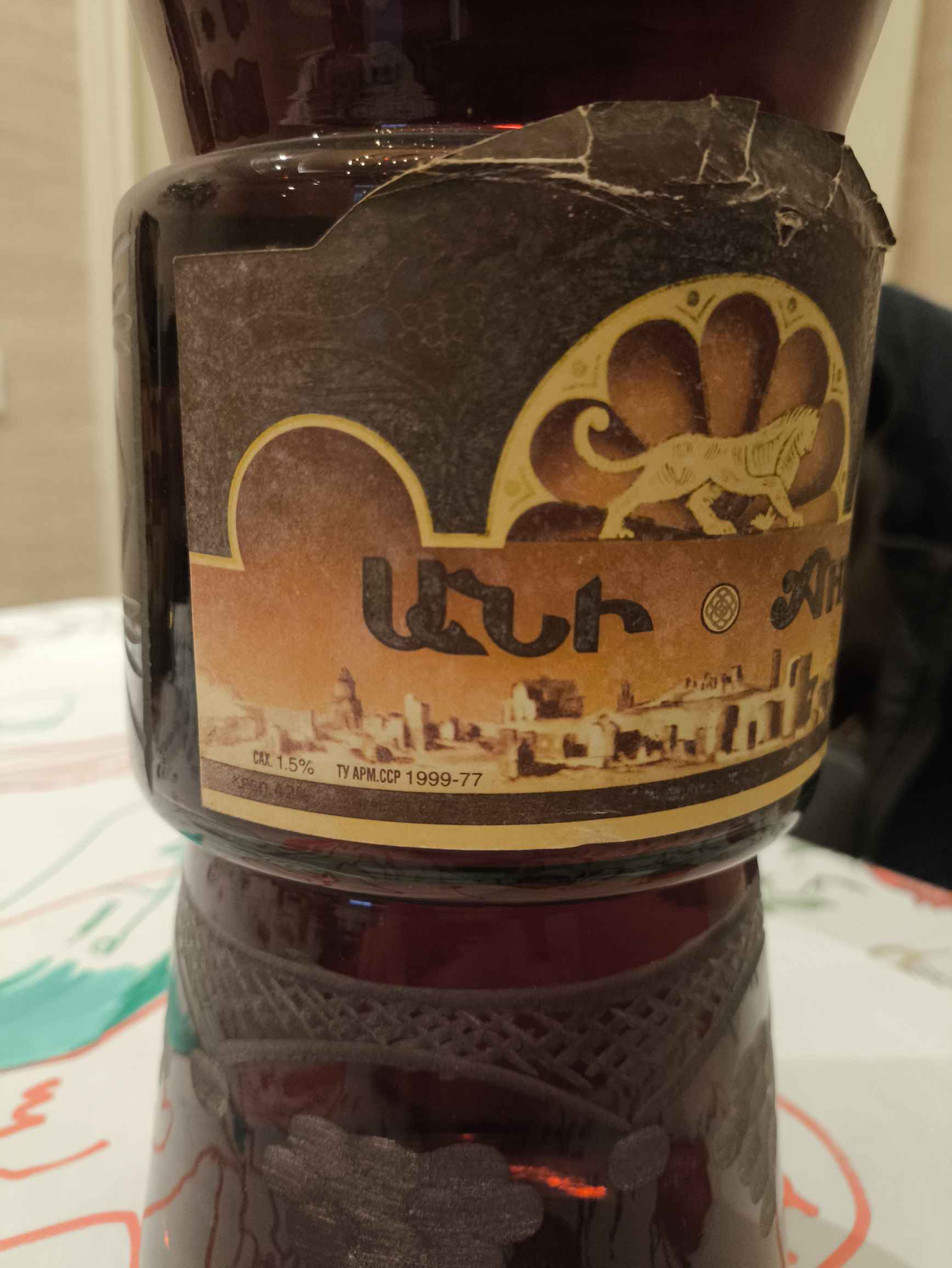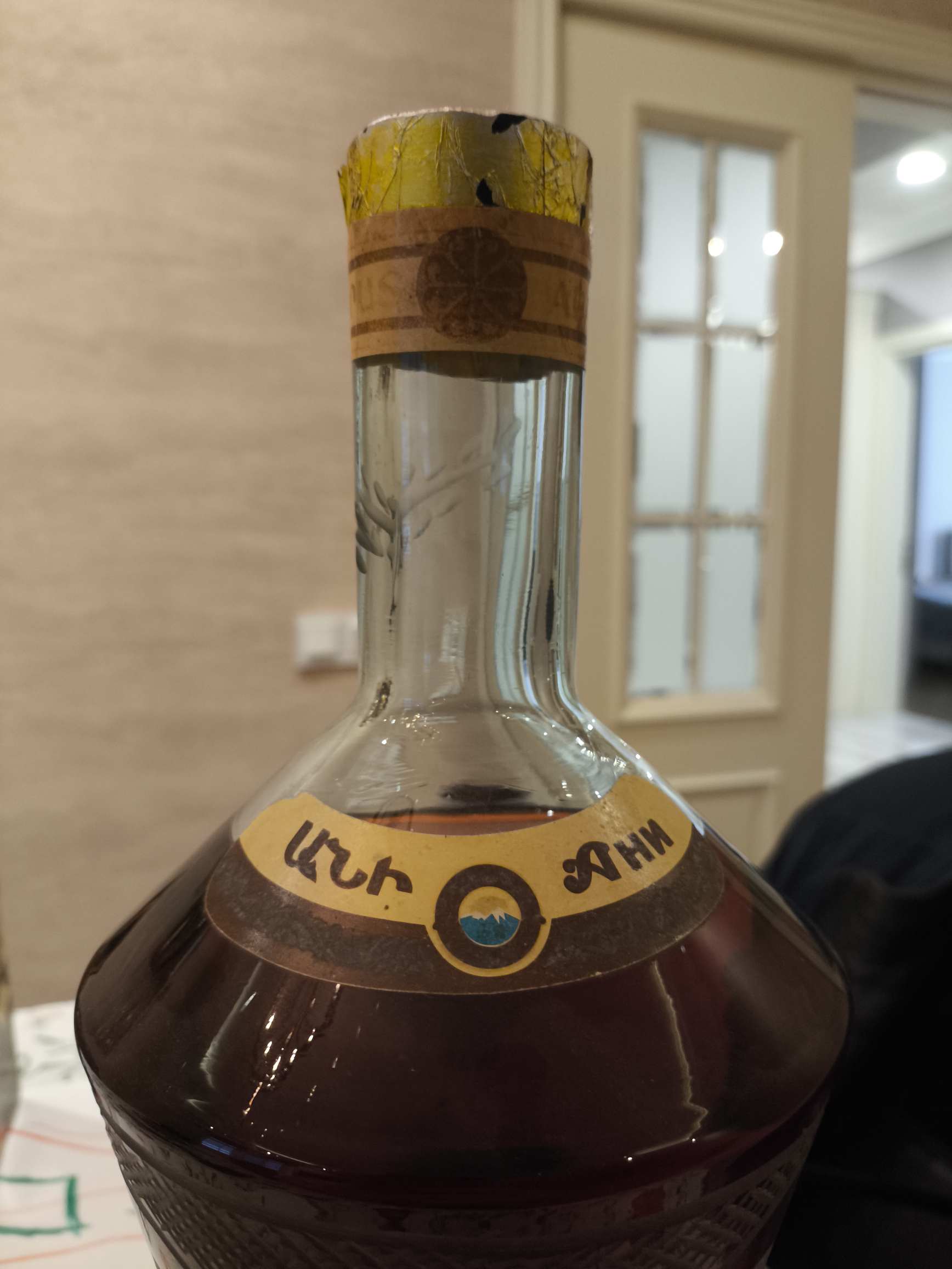 Так себе бутылка , я такие не покупаю. Это точно не СССР - во первых форма бутылки, такие с 90-х попадались. Фольга не гофрированная, этикетка элементарно не по размеру, горловая этикетка без золочения. Какой-то домашний розлив ... по Еревану много кто лил. Часто попадется что-то подобное и многие даже не скрывают, что тащили спирт с завода и розливали дома кто во что горазд, самостоятельно сочиняя купажи:)