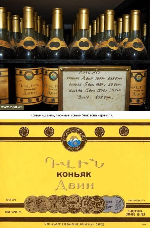 После 1943 г. ежегодно до смерти У. Черчилля раз в квартал в Лондон отправляли десять ящиков коньяка «Двин». Каждый ящик содержал 20 бутылок.