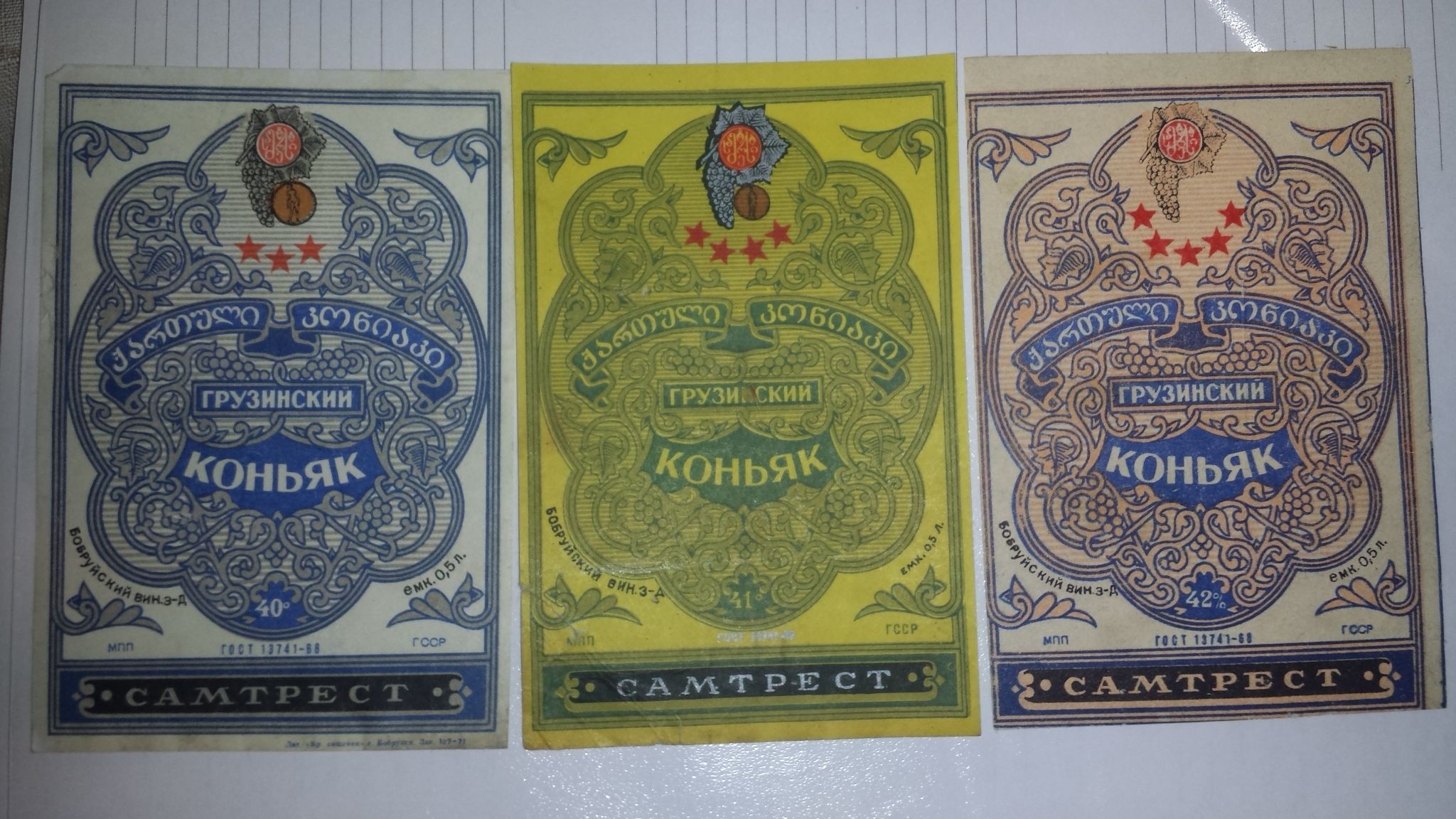 Натолкнулся в интернете на коллекцию этикеток коньяков СССР. Обнаружил 2 этикетки ординаров 4 звезды Белорусской ССР. Производства вино-водочного объединения "Кристалл" г. Минск.