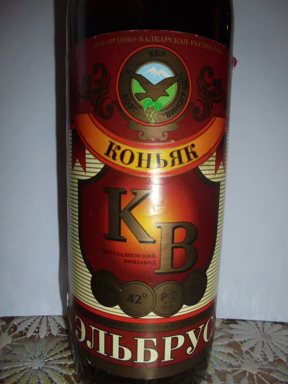 Есть такие бутылки..1)-коньяк ЭЛЬБРУС КВ 42% Прохладненский винзавод.Дно 92 ГОСТ 13741