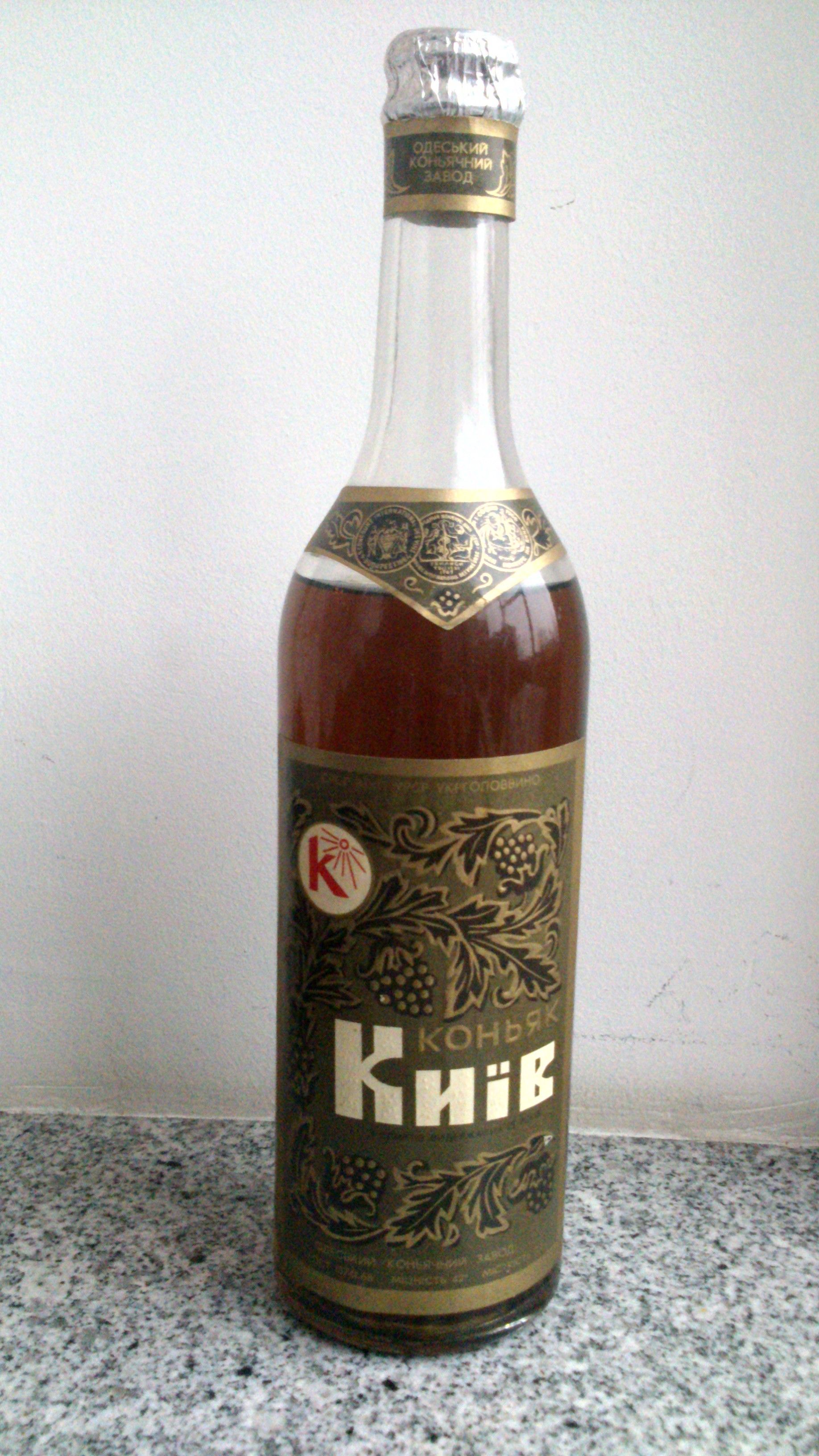 Коньяк "Киев" -выпускался с 1954 г. по 2005 г. на Одесском коньячном заводе, 15 лет выдержки, крепость-42%, награжден 9 золотыми медалями на выставках: Будапешт, София-1964 г,Тбилиси-1965 г., Бухарест, Ереван-1968 г.,Ялта-1970 г., Солнчев Бряг-1976 г. Тирасполь 1997 г. Одесса-2003 г. Серебряная -Ереван 1997 г. Гран При- Ялта -2004 г.