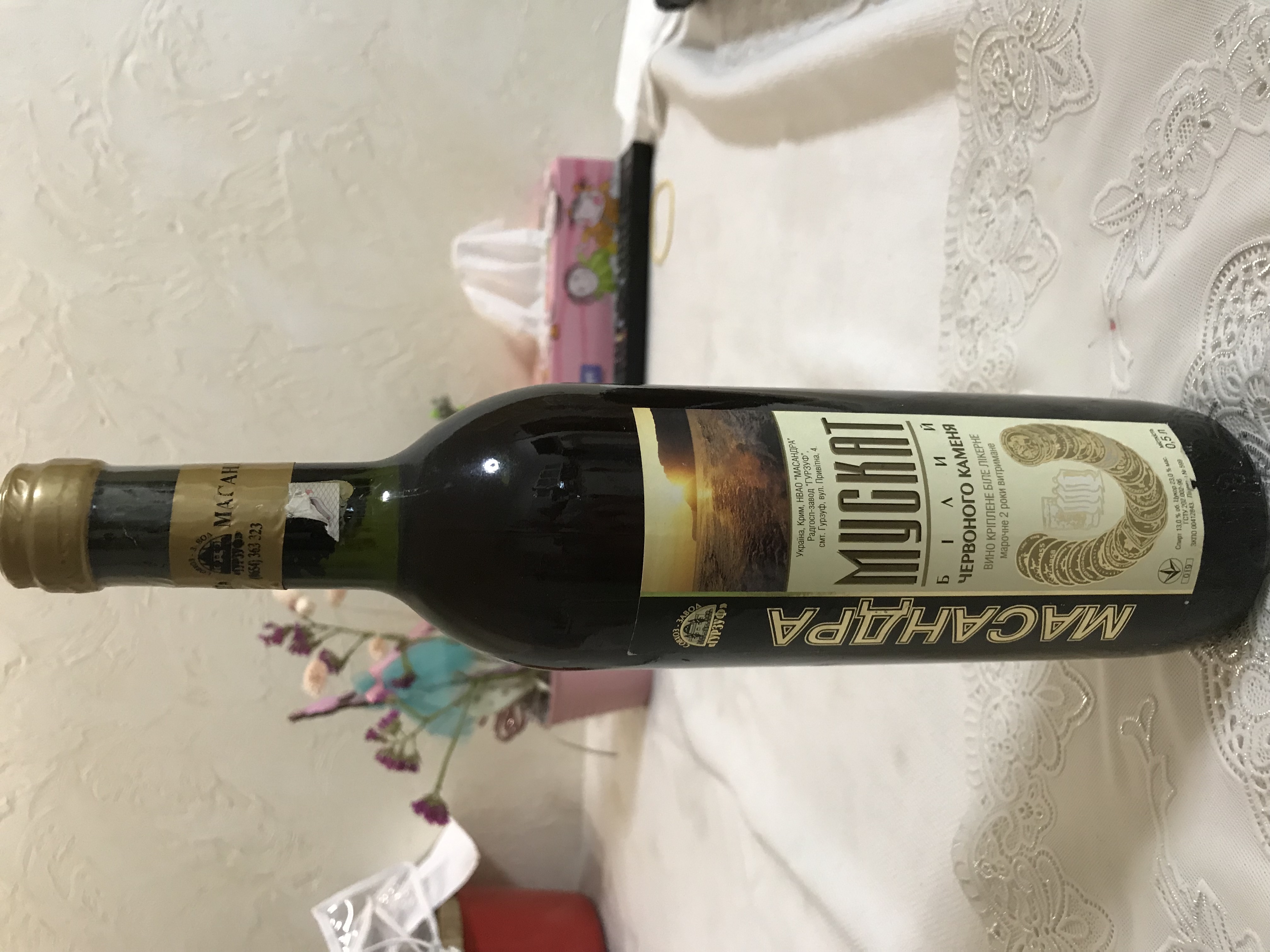 Вина покупались на заводе Коктебель в 2007 году (Мускат белый в Массандре). Покупались для себя, часть купленного была выпита, а эти как-то задержались, т.к. за последние десять лет вкусы немного поменялись. Обнаружил недавно в кладовке, где они успешно пролежали со времени привоза.