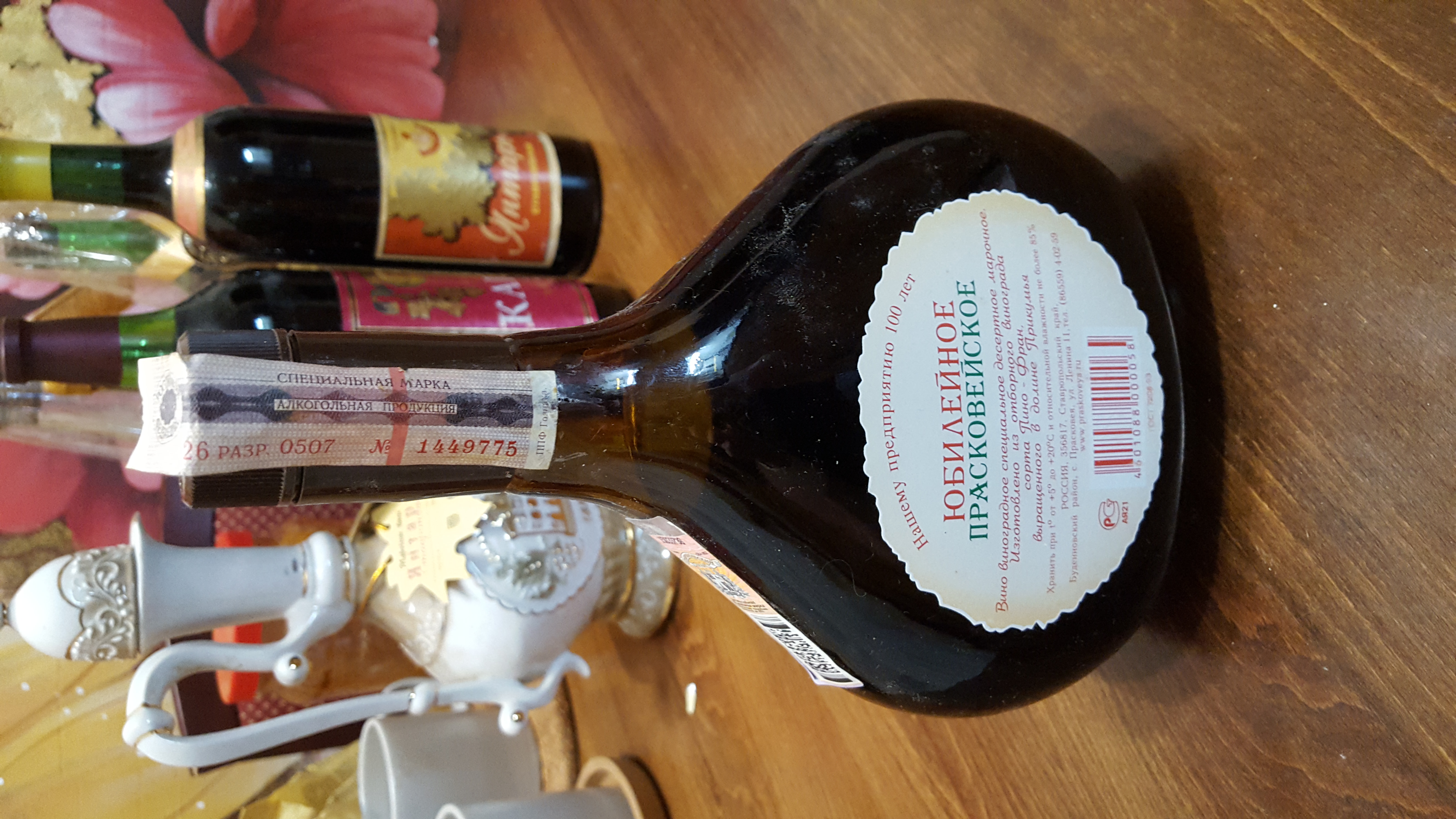 Прасковейское Красное ...интересная бутылка,судя по фольге может быть даже 70-х годов( хотя могут быть и 90-е) , но с учетом рисков в те же 2-3 .