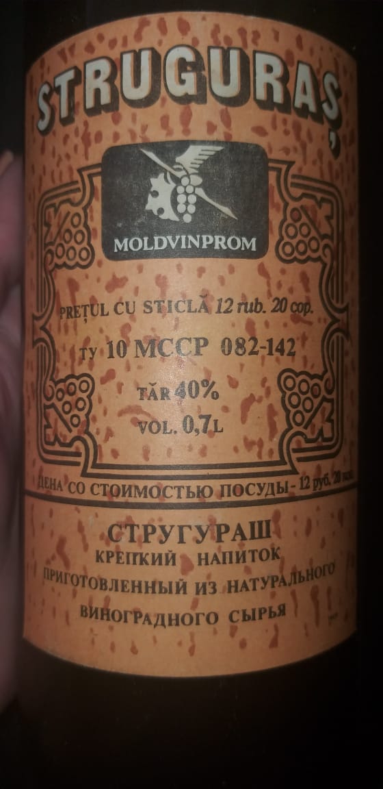 Стругураш - по сути подкрашенная виноградная водка. Ваша бутылка начала 90-х годов (надписи уже на латинице). Среди любителей молдавского алкоголя советского и постсоветского периода напиток известен. Был довольно популярен в 80-х, начало 90-х годах. На вскидку 2-3 тысячи рублей. По такой цене со временем его можно продать.
