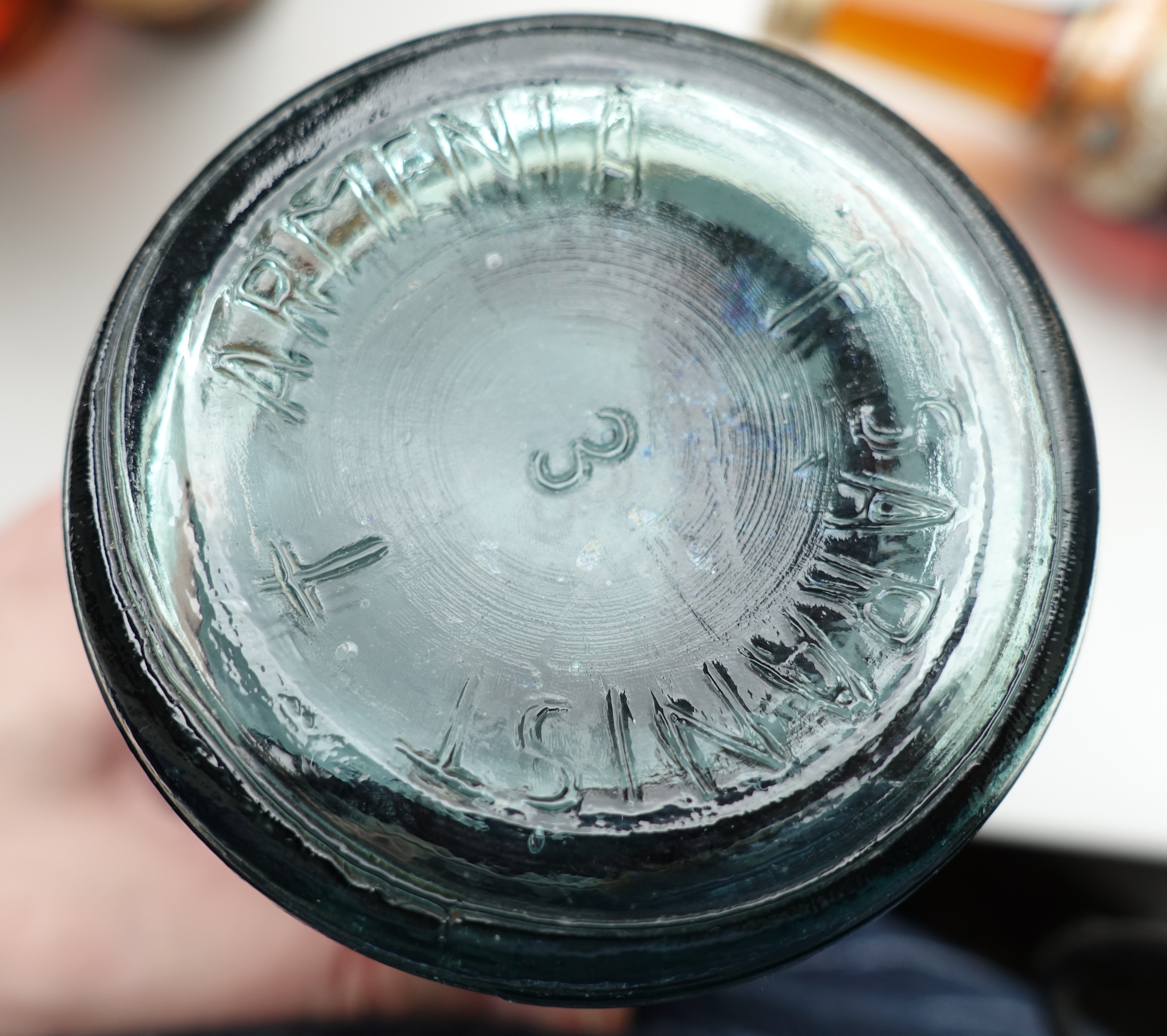 Третья бутылка просто близнец второй по этикетке и укупорке, но стекло зелено-коричневое и маркировка на донышке не читается.