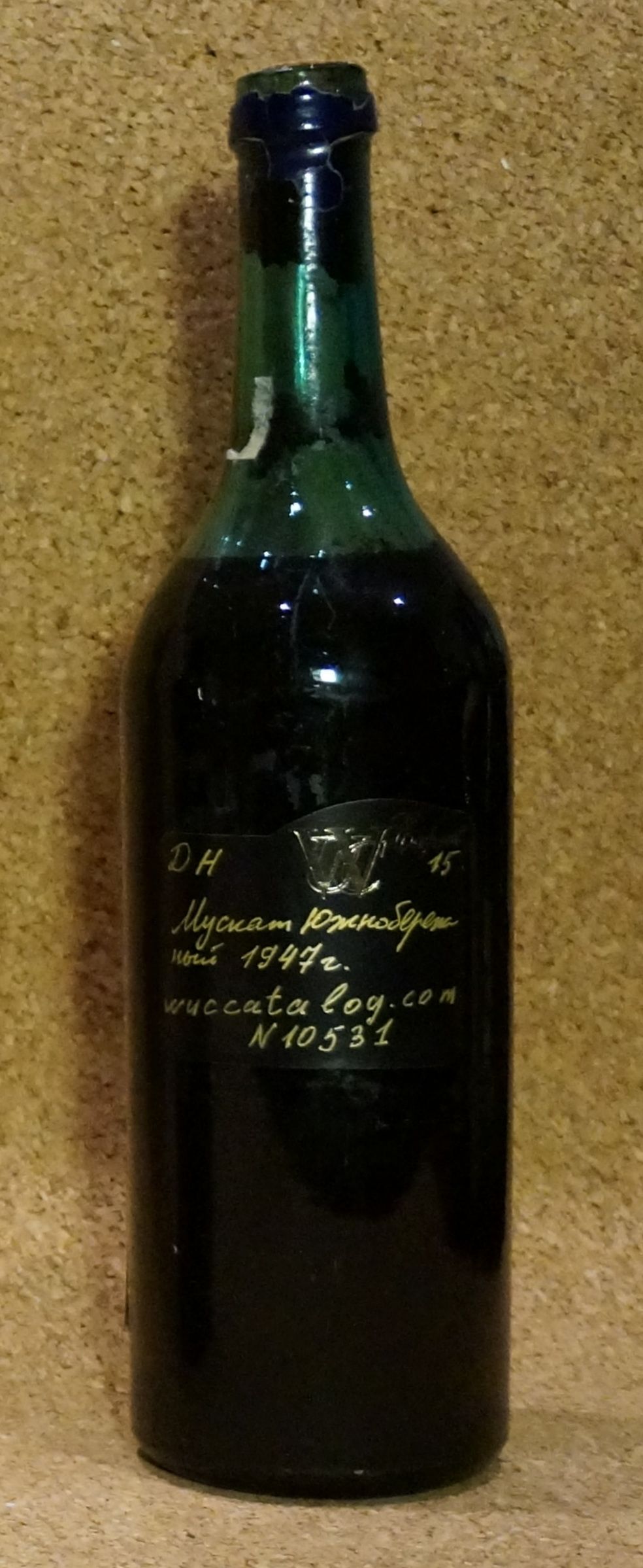 На фото бутылка с вином 1947 года урожая!