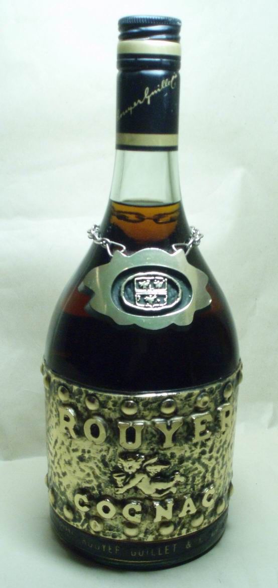 Коньяк Royuer Guillet. Этикетка выполнена в виде чеканки на фольге. Точного года выпуска нету, на оборной стороне стоит копирайт (с) 1968.