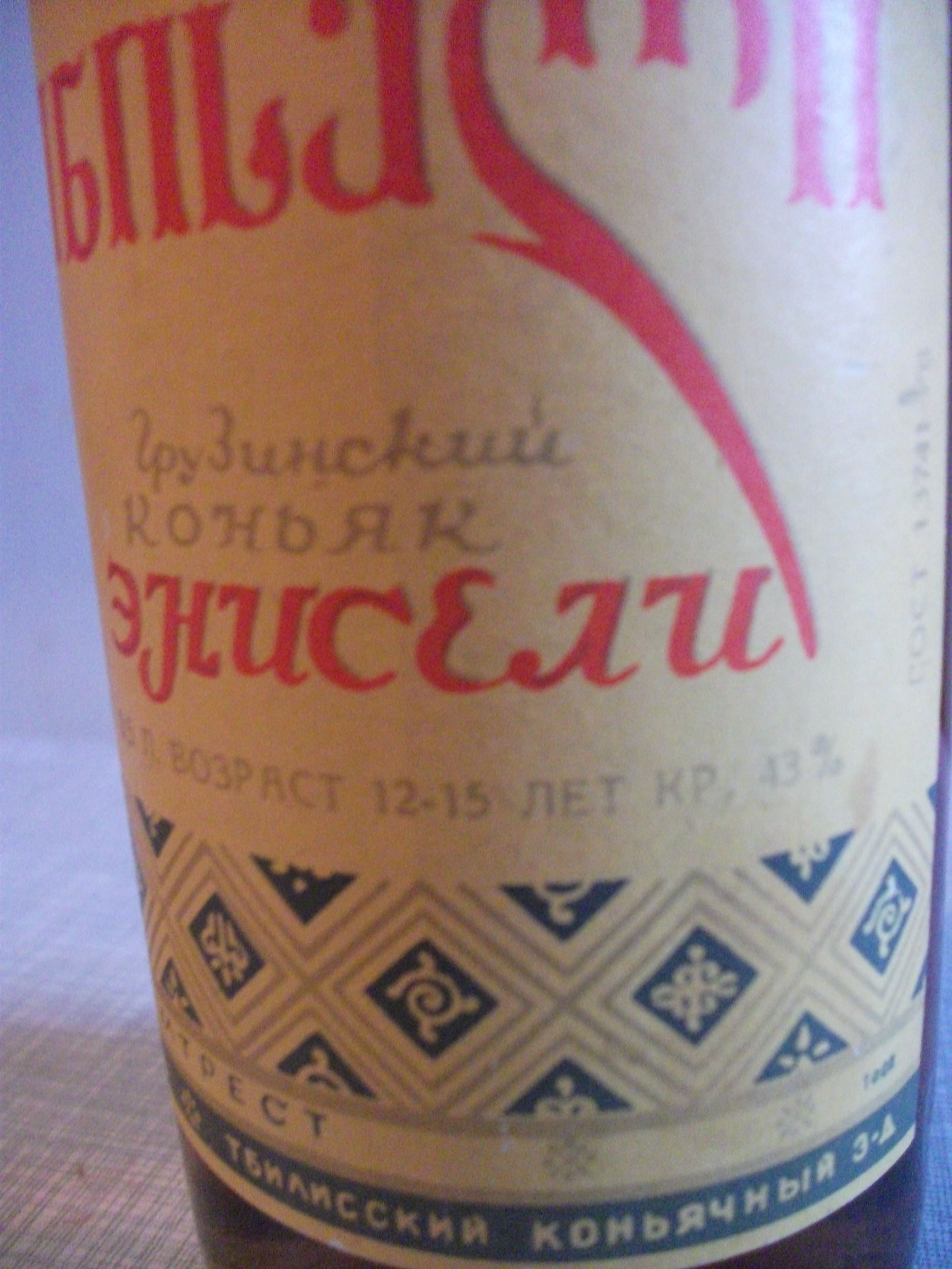 1.Грузинский коньяк "Энисели", гост 13741-78, на этикетке внутри стоит дата 1.10.87г.