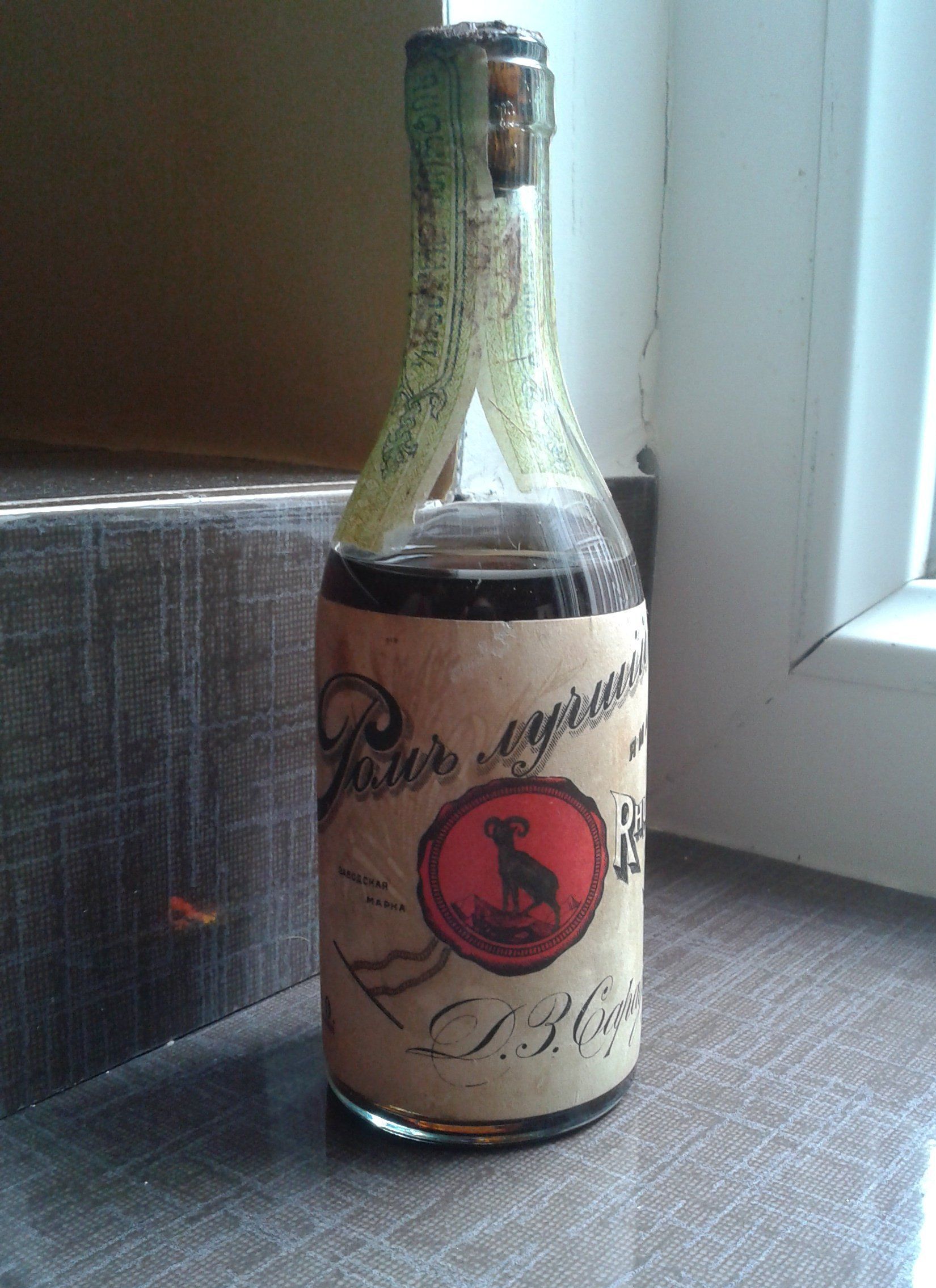 Такие бутылки это "кот в мешке" . В тех-же к примеру 70-тых ,какой-нибудь "копай" мог найти эту бутылку и без задних мыслей залить в нее самогон-коньяк,настойку какую-то,закрыть ее пробкой и забыть в погребе . Его предок найдя сей пузырь восхитился и обозначил его "Ромом" Сараджева. И он уверен в подлинности.Вероятностей масса.