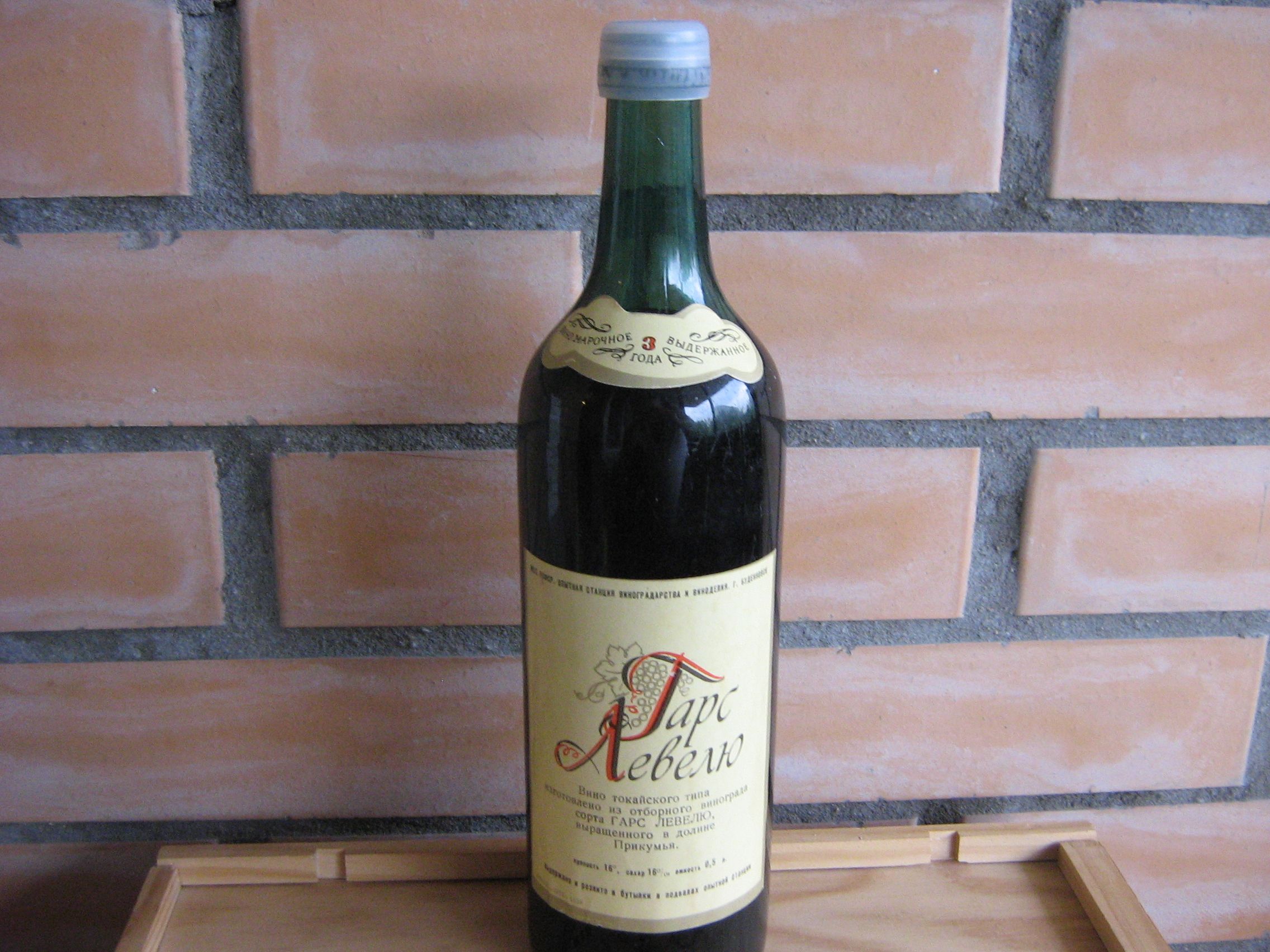 Я кстати тоже считал ,что гарс левелю венгерский сорт. Помнится в энотеке Крикова было в свое время приличное количество Гарс-Левелю 50-тых годов. А о том ,что была такая-же одноименная марка в СССР даже не думал....Ну наверно она сильно не прижилась...Марочное десертное вино токайского типа Гарс Левелю из одноимённого сорта винограда. Родом из Хорватии, считается сортом народной селекции. В связи с тем, что в Токае из него издревле приготовляют знаменитейшее вино Токай (разных марок), часто этот сорт ошибочно называют венгерским. Вино имеет цвет от светло- до тёмно-янтарного, нежный, полный, слегка пикантный вкус с медовыми тонами и сортовой аромат. Срок выдержки - изначально 2 года, затем увеличили до 3-х лет. Кондиции - спирт 16*, сахар 160 г/л., кислотность - 4-5 г/л. Вырабатывалось и выдерживалось в подвалах опытной станции, там же и розливалось.